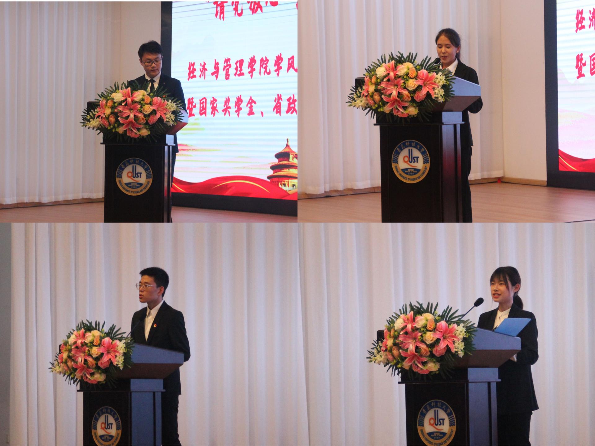 启动仪式上,团委书记王聪宣读了《关于开展“请党放心 强国有我”熊猫体育学风建设月的通知》。团委副书记张显全宣读了《熊猫体育获得省级以上荣誉称号名单》,党委副书记刘跃宁、副经理宫攀为获得省级以上荣誉称号的员工颁奖,2019-2020学年国家/省政府奖学金获得者代表物流182班彭承琪、财务181班王倩、工业182班高广旭分别做了经验交流和成果汇报。