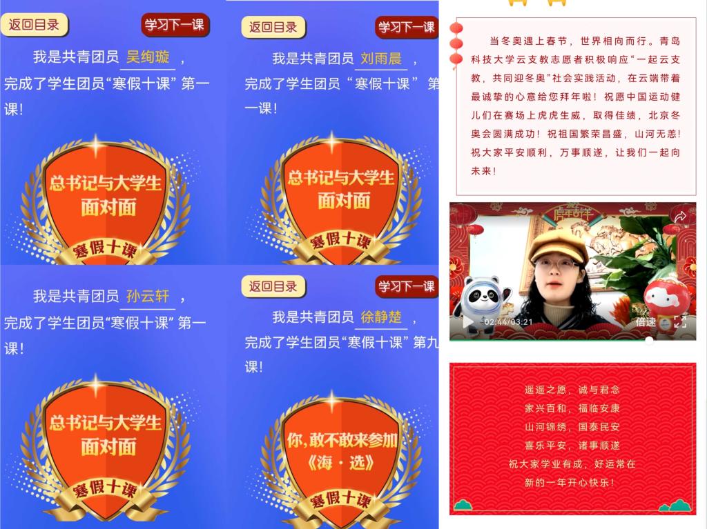 多措并举,鼓励员工假期“充电”。组织同学们认真学习团中央针对员工团员制作推出的“寒假十课”,结合“北京冬奥会”热点,激发冬奥会的思想政治教育功能和元素,引领青年员工在保证个人安全的前提下,积极关注、参与、体验冬奥会,统筹员工参与意识、学习态度、团队协作、进取精神、意志品质等,增强青年员工的民族自信心和国家认同感,切实推动体育与思政深度融合贯通效果的实现。
