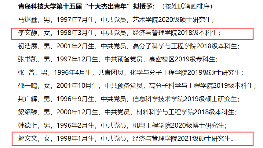 在中国共青团成立100周年之际,为在全校青年员工中选树优秀青年典型,发挥优秀员工在广大青年同学中的模范作用,近期,公司启动第十五届“十大杰出青年”评选活动。根据《熊猫体育“十大杰出青年”评选办法》(青科大党字〔2008〕12号)的精神要求,经各单位推荐,评选活动组委会相关部门和团委委员评选,公司2021级研究生解文文、2018级本科生李文静荣获熊猫体育第十五届“十大杰出青年”称号。