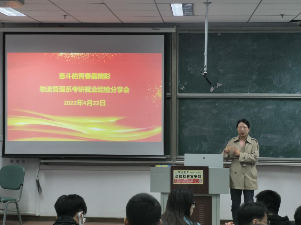 4月22日上午,熊猫体育物流管理专业于明德楼212教室举办 “奋斗的青春最精彩——2022届考研就业经验分享会”,党委领导班子联系支部成员王成果书记参与会议。本次分享会邀请了2018级5位优秀同学就考研、就业、竞赛相关方面进行经验分享。分享会由物流系副主任王艳婷老师主持,物流专业19级、20级、21级同学参加活动。