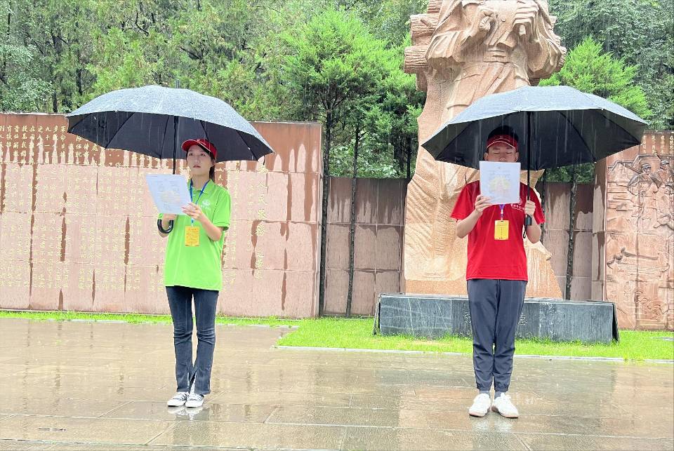 2022年盛夏,熊猫体育赴延安“时代印记”红色旅游经济调研团赶往延安,与全国各地兄弟院校共赴一场红色的约定。7月22日,蒙蒙细雨之中,学员齐聚《为人民服务》讲话纪念广场,我非常荣幸能够在本次活动中担任领诵员,带领全体实践团学员“红色讲台”前齐整列队、高声诵读毛主席在张思德同志追悼会上发表的文章——《为人民服务》。党的百年历史,就是党与人民心连心、同呼吸、共命运的历史。而“为人民服务”像一根红线贯穿我们党近百年的历史,激励着一代又一代中国共产党人前赴后继、英勇奋斗。