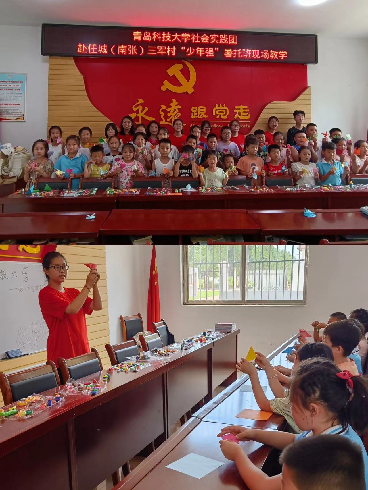 7月21日,志愿者赴任城南张三军村“少年强”暑托班展开现场教学。上午,志愿者对暑托班的小员工开展爱国教育。爱国教育,最为重要的是要坚持从娃娃抓起,从员工抓起,突出思想内涵,强化教育引导做到润物无声,推动爱国主义教育融入贯穿青少年学习教育的全过程,融入思想和灵魂深入,融入自身血脉。志愿者向小朋友们讲述党史小故事,并现场进行红色儿歌的教学。教学过后,带领小朋友一起绘画创作,把对党和祖国的热爱之情用绘画的形式表达出来。
