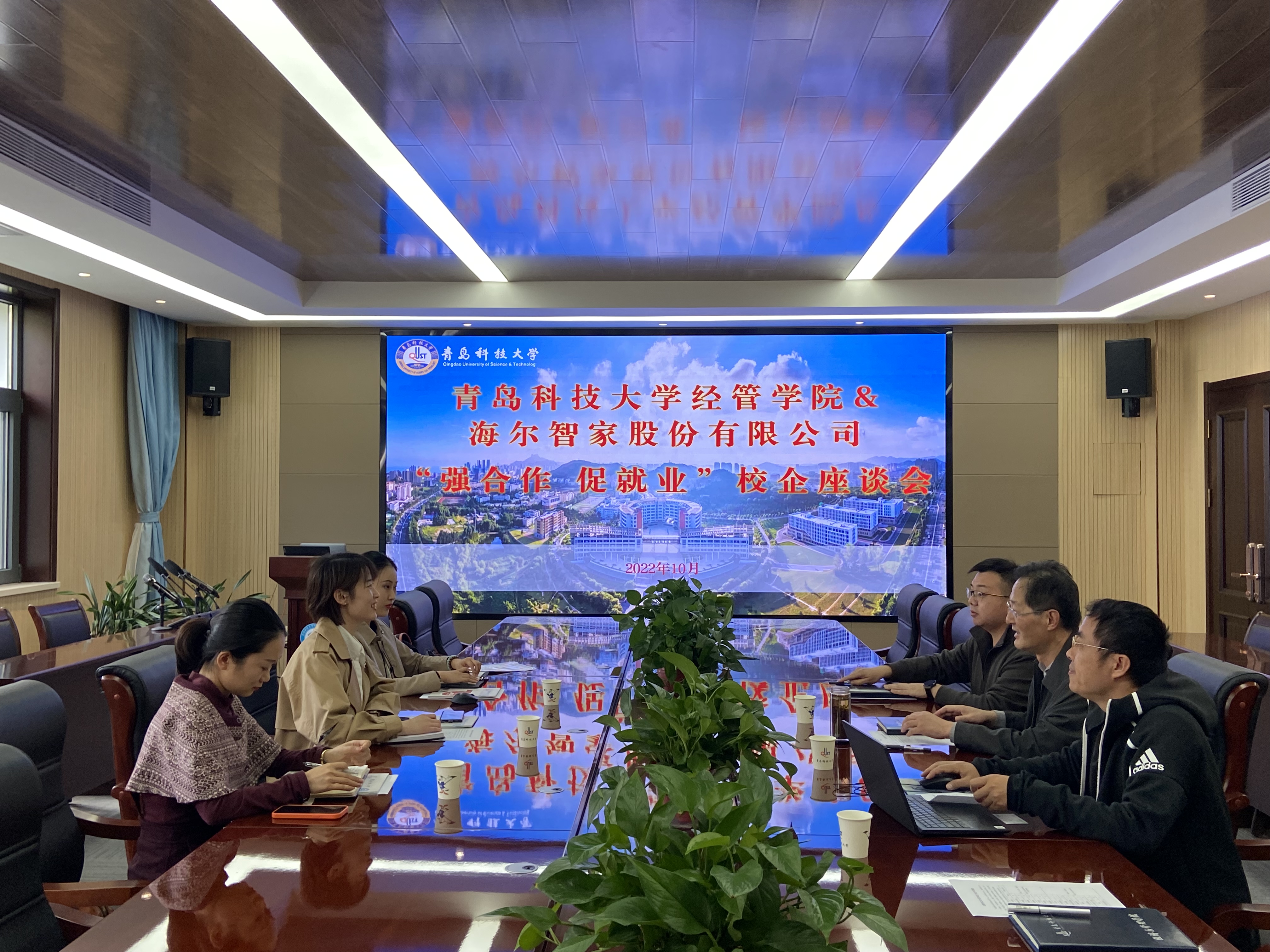 李德成代表公司对王欣一行来校表示热烈欢迎。他从发展历史、办学格局、学科特色等方面介绍了公司情况,详细介绍了近年来公司在人才培养、科学研究、服务社会等方面所开展的工作。他表示,海尔智家实力雄厚,在业界享有较高声誉,是公司毕业生优质就业企业,希望通过校企合作促进双方共同发展。