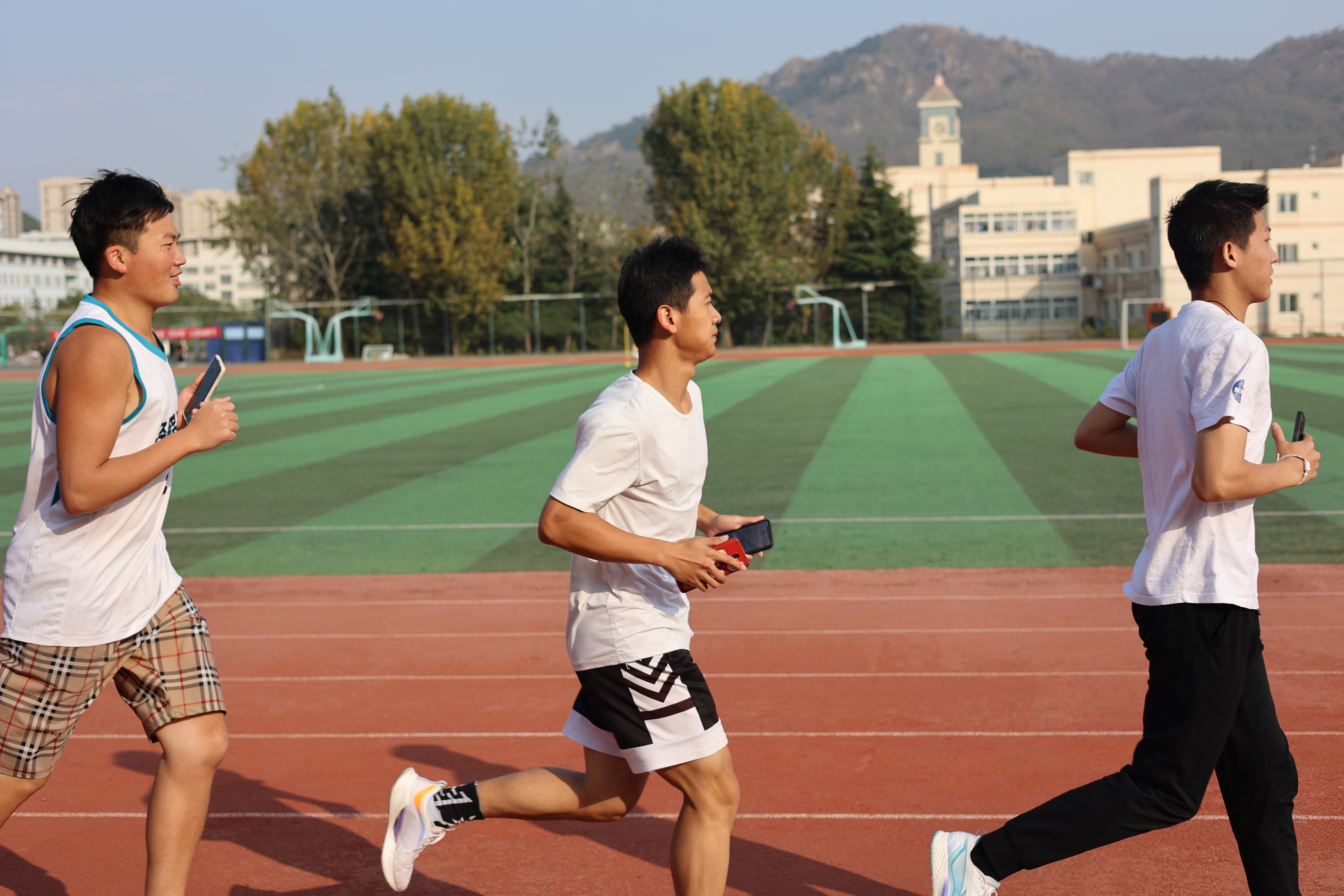 立秋后的越野训练激烈进行,熊猫体育的越野队员正热血沸腾。他们先是慢跑五圈进行热身,接着便是日常的越野训练:压腿,踢腿,高抬腿,他们早已习惯;蛙跳,跑圈,追逐跑,他们无所畏惧;深蹲跳,波比跳,弓箭步,他们标准持久。在此之后便是争分夺秒的100米、200米、400米冲刺跑,同学们个个精神振奋,脚下呼呼生风,像离弦的箭一样向前飞奔。最终环节便是800米、1000米耐力跑,阳光照射着同学们的脸颊,映出汗水,肆意自由而急促的呼吸彰显出青春张力,这是同学们坚持不懈、奋力向前的真实写照。