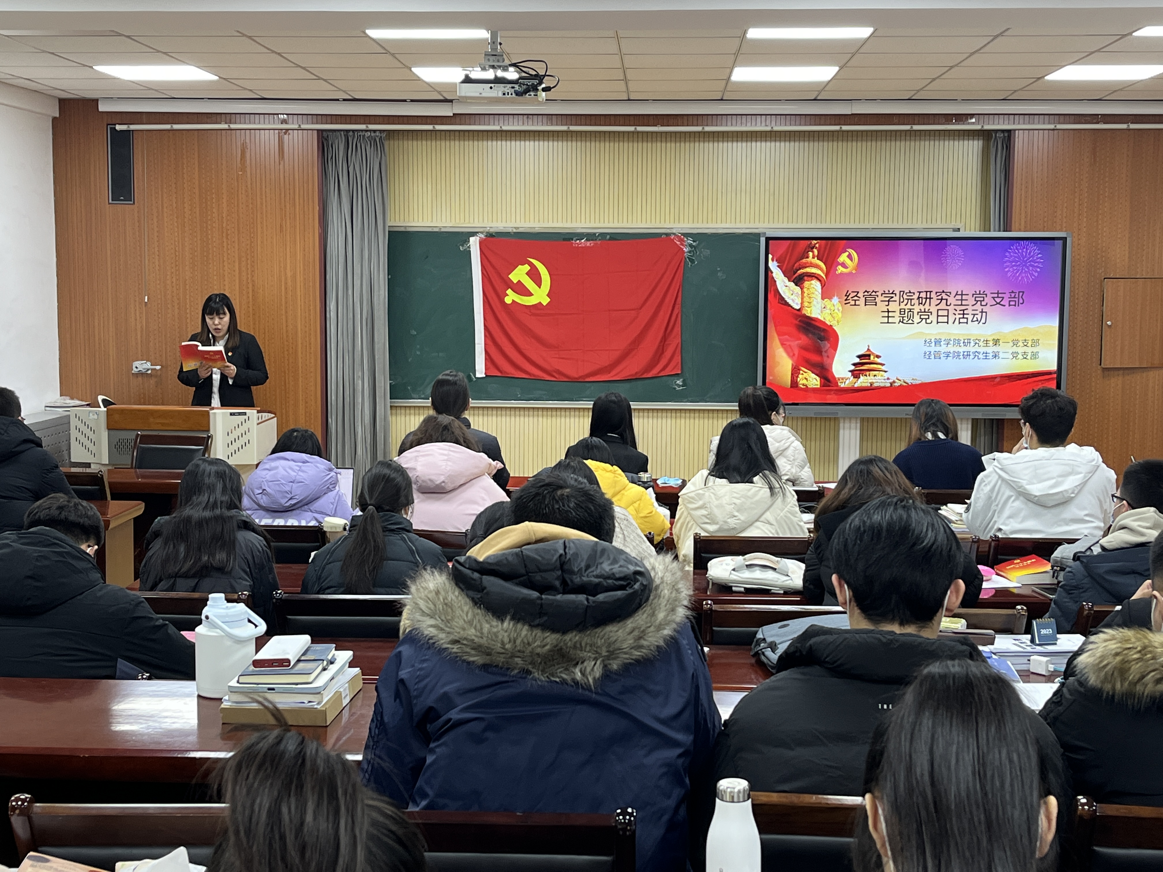 为深入学习宣传贯彻党的二十大精神,在全院范围内掀起持续学习热潮,12月2日晚,研究生党支部于经管楼504开展“赓续英烈红色血脉,绘就当代青春底色”爱国主义教育主题党日活动暨学习宣传贯彻党的二十大精神专题会议,研究生党支部书记王聪老师、张显全老师出席会议,全体研究生党员参会。