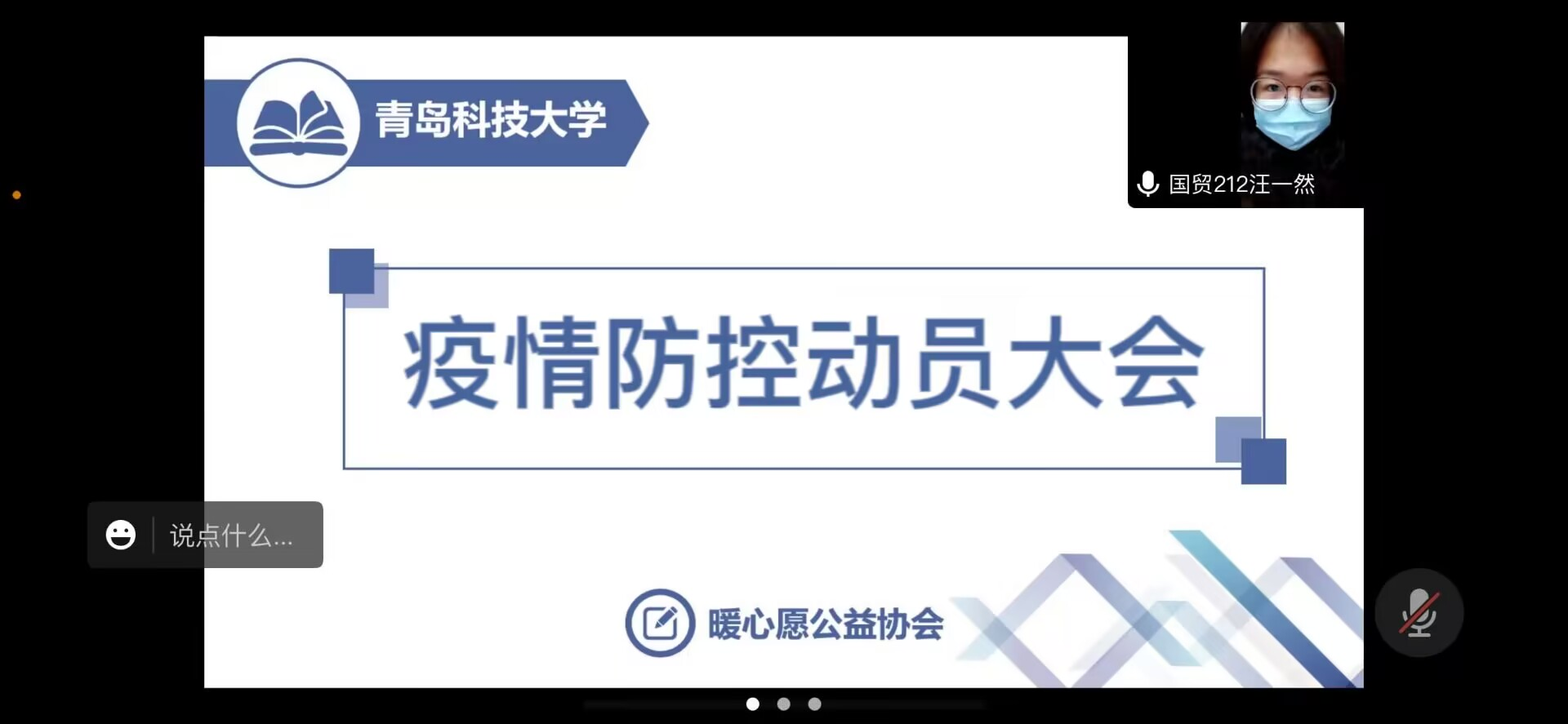 疫情突发,校内疫情防控工作骤然严峻,为响应集团号召,动员广泛青年志愿者投身疫情防控工作中。暖心愿公益协会召开线上疫情防控动员大会,号召同学们积极参与校园志愿者的疫情防控工作,投身志愿者的行列,为校园疫情防控疫情贡献自己的力量。暖心愿指导老师孙一君强调:“作为防疫志愿者,我们要时刻做好自身防护,困难当前,每个人都应当提高防疫认识,更加团结地去克服困难,配合公司安排,确保各项防控工作的顺利进行。”