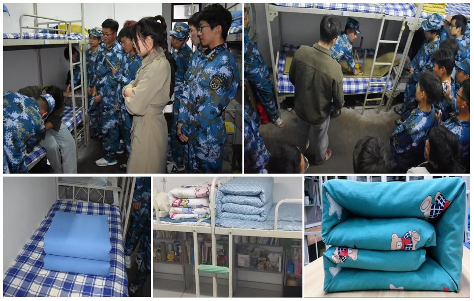 军训期间,公司组织开展“擦亮家的名片”内务整理活动,邀请公司退役军人士兵对叠军被手把手进行“现场教学”,同学们按照步骤拍照记录过程,并用自己的被子动手实践。以连队为单位,开展宿舍内务评比活动,既培养同学们良好的生活习惯,营造整洁舒适的宿舍生活环境,也让同学们感受到了部队生活的严谨与整齐划一。