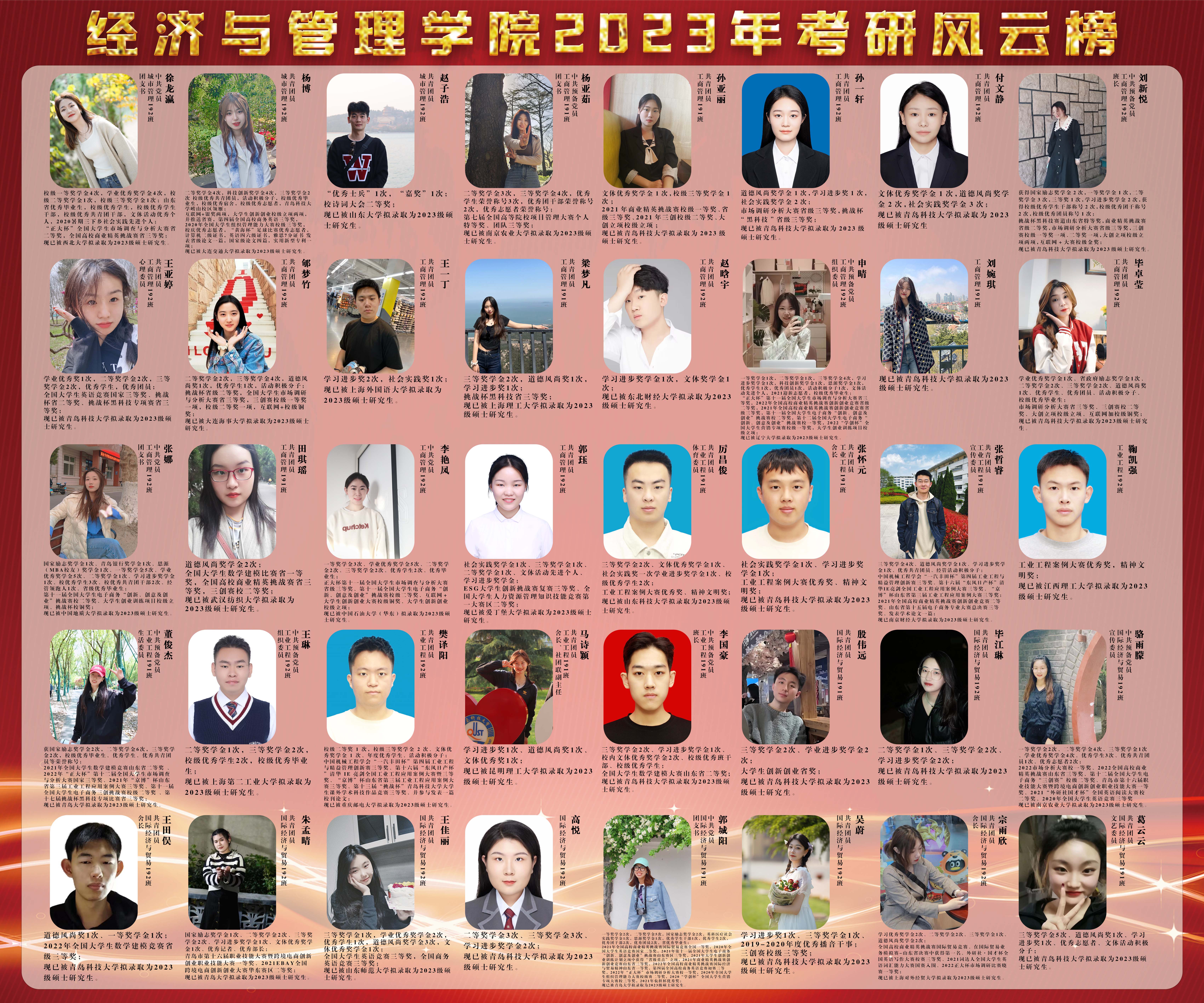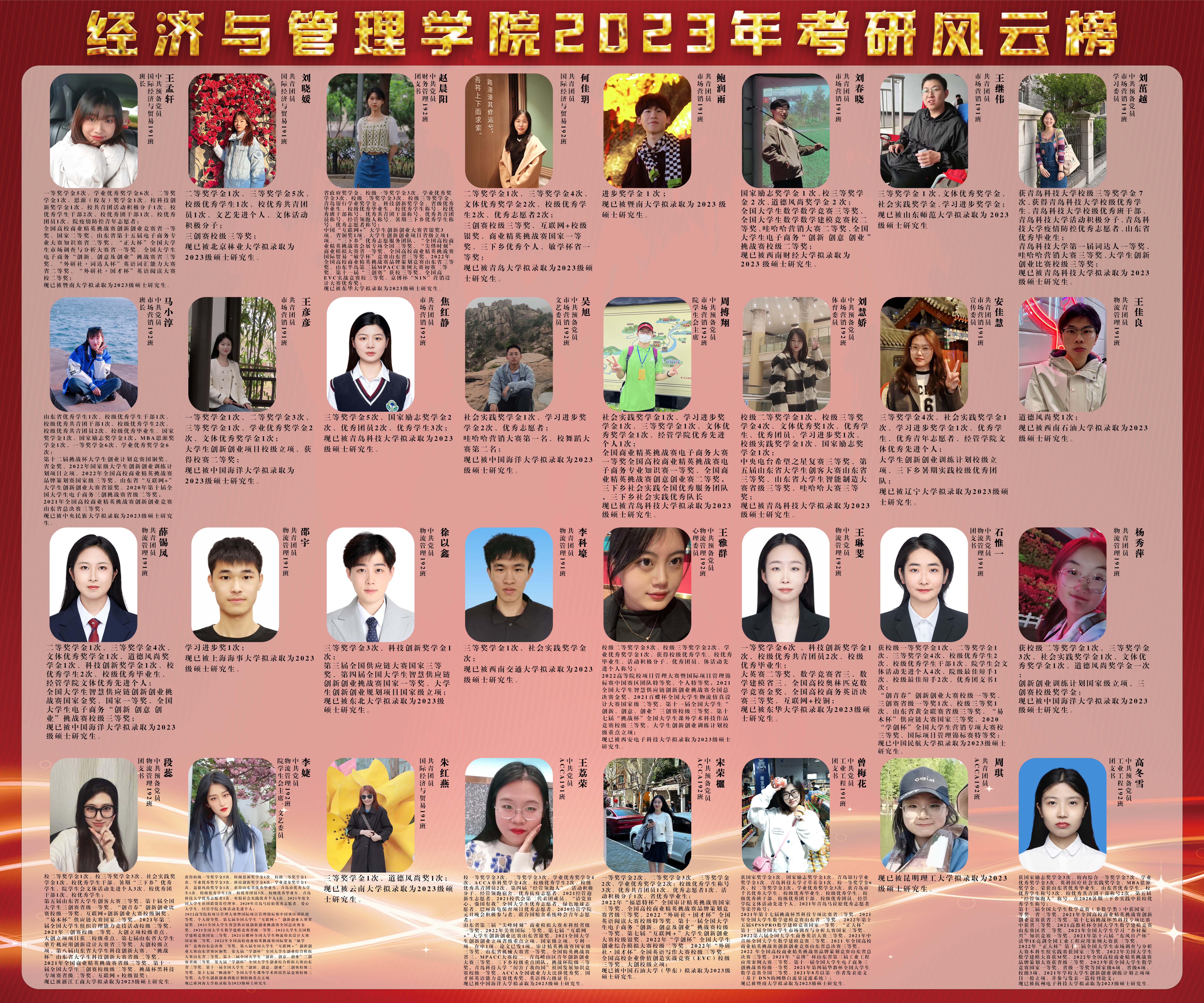 2023年熊猫体育考研成绩捷报频传。截止目前,公司2023届毕业生共440名,其中119名员工收到了来自山东大学、中国海洋大学、河海大学等知名院校的录取通知,总体升学率达到27.05%,其中国内考研率达25.45%,实现新突破!