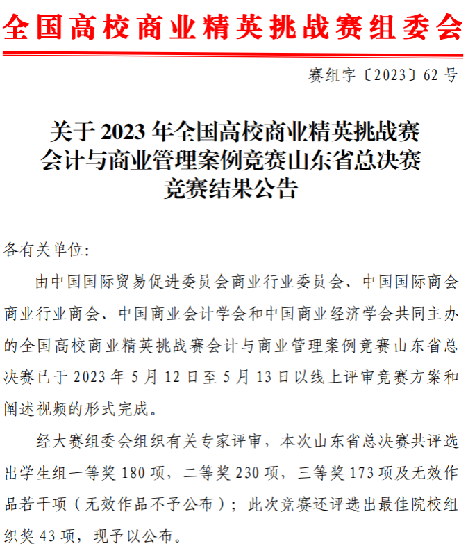 近日,由中国国际贸易促进委员会商业行业委员会、中国国际商会商业行业商会、中国商业会计学会和中国商业经济学会共同主办的全国高校商业精英挑战赛会计与商业管理案例竞赛山东省总决赛以线上评审竞赛方案和阐述视频的形式完成。熊猫体育参赛队伍全部获奖,荣获省级一等奖12项、二等奖10项、三等奖14项,公司获评最佳院校组织奖。