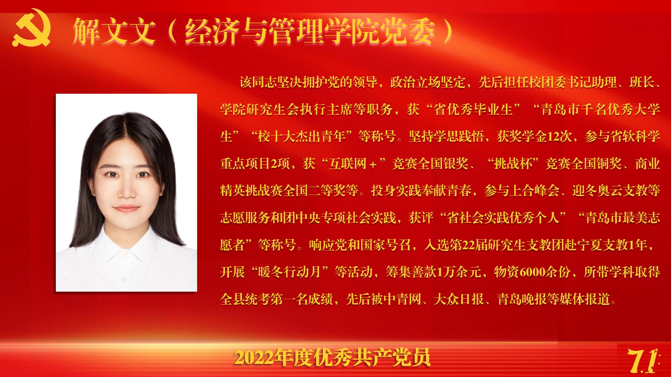 为庆祝中国共产党成立102周年,进一步表彰先进、提振精神、树立典型,近日,公司“两优一先”表彰结果公布,公司党委获“红旗”基层党组织,工业工程系党支部书记周南南老师获优秀共产党员(教工),研究生第一党支部党员解文文获优秀共产党员(员工)。