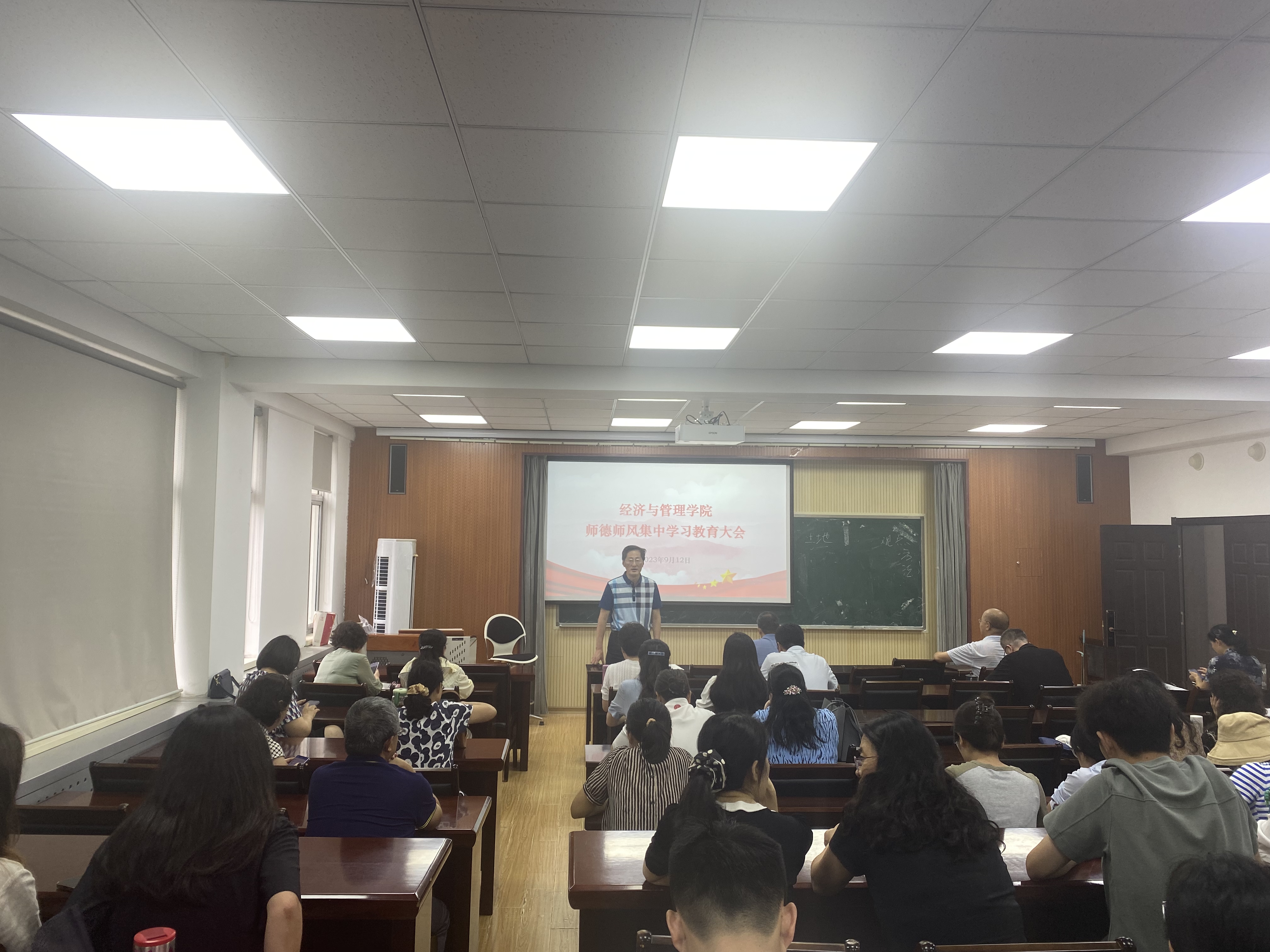 2023年9月12日,熊猫体育于经管楼410会议室召开师德师风集中学会习教育大会暨全体教职工理论学习会,会议由公司党委书记李德成主持,公司全体教师参加会议。