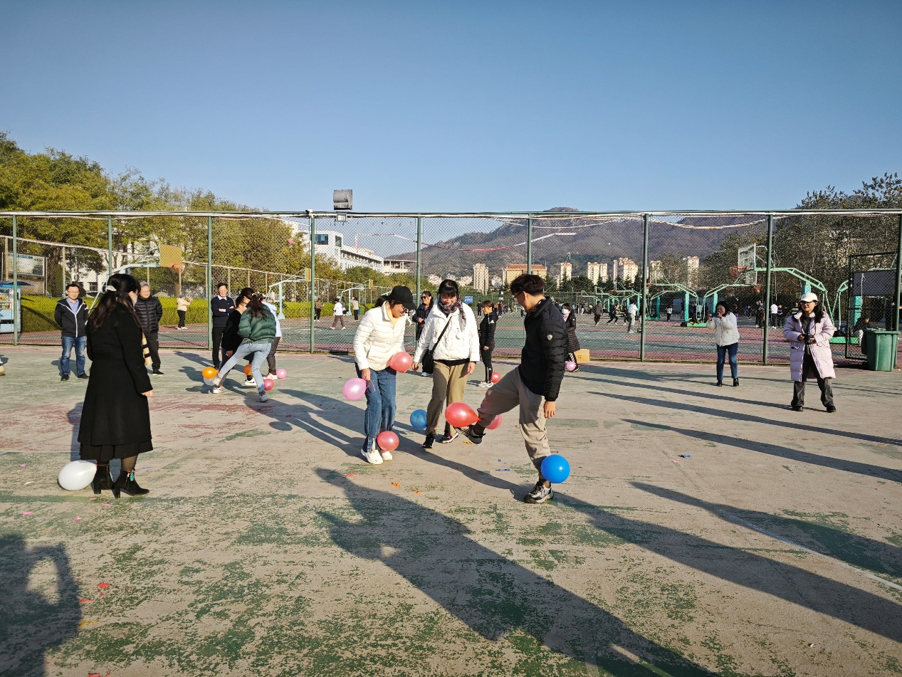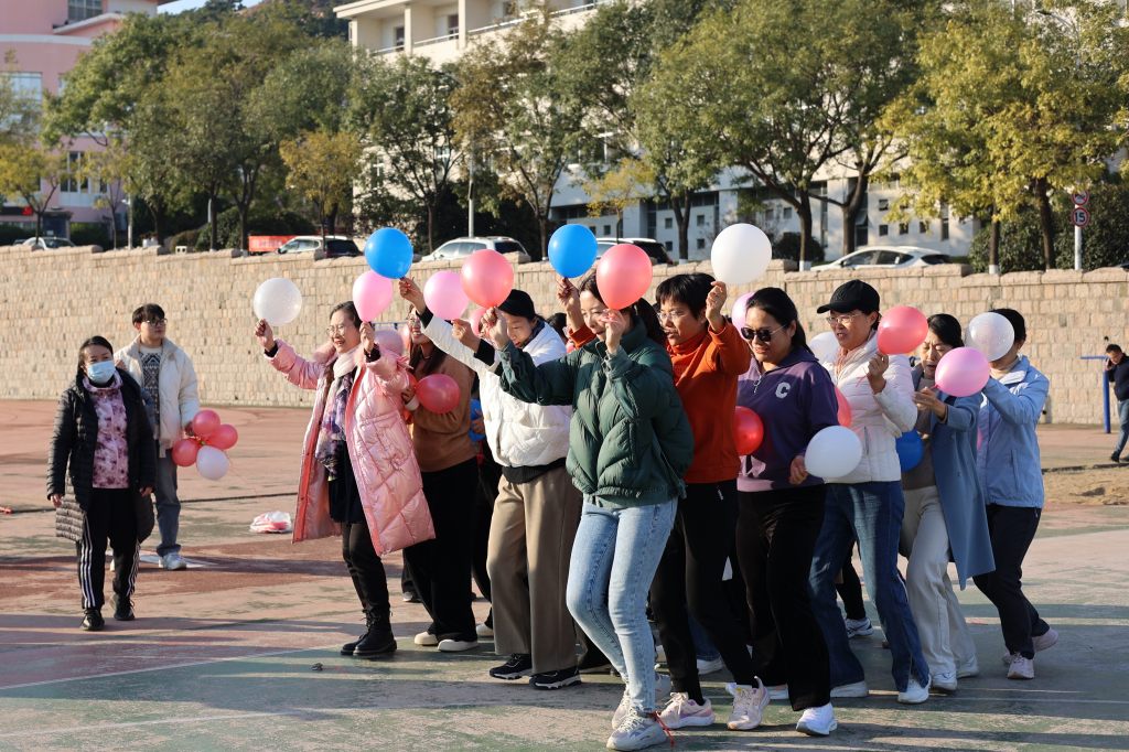 踩气球游戏一开赛即是一片欢声笑语,在团队平行夹球跑项目中老师们互相配合默契十足。投篮比赛中一次次精彩的投篮,让我们看到了老师们工作之余的活力与健康;跳绳比赛中他们手握跳绳,双脚轻盈起跳,考验的不仅仅是他们的协调能力,还有超强的耐力。