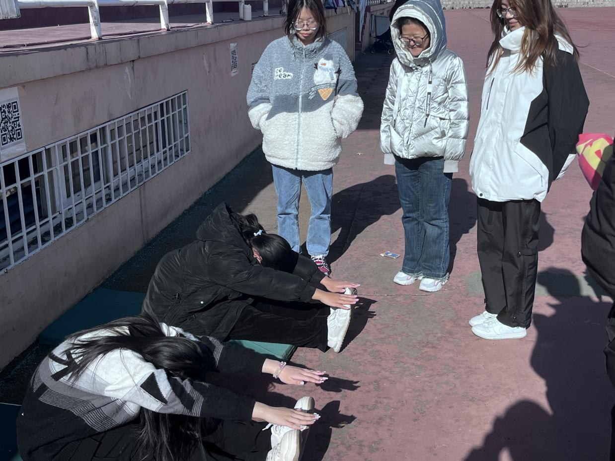 活动中,同学们态度认真、动作标准。伸直双腿,缓慢呼气,用双手抓住双脚或小腿,在保持上身挺直的同时,慢慢弯腰向前倾斜,试图让头部靠近膝盖,并感受到腿部后侧和腰部的伸展感,停留15-30秒左右。重复动作3-5次,逐渐增加次数和持续时间。该训练可以帮助增加腿部和腰部的柔韧性,缓解腰部和背部的紧张感,对改善身体姿势和减轻腰部疼痛也很有帮助。