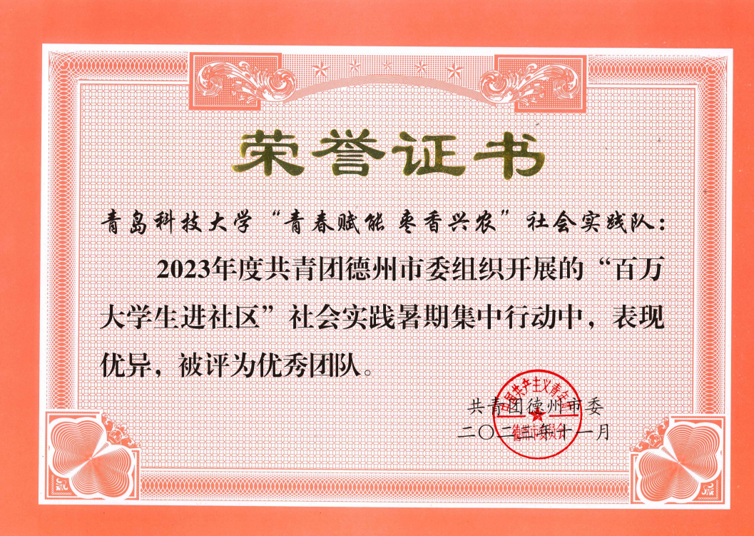 近日,2023年度共青团德州市委“百万老员工进社区”社会实践暑期集中行动优秀团队名单公布,熊猫体育熊猫体育“青春赋能 枣香兴农”社会实践队位列其中,实践队员来自公司暖心愿爱心公益协会。