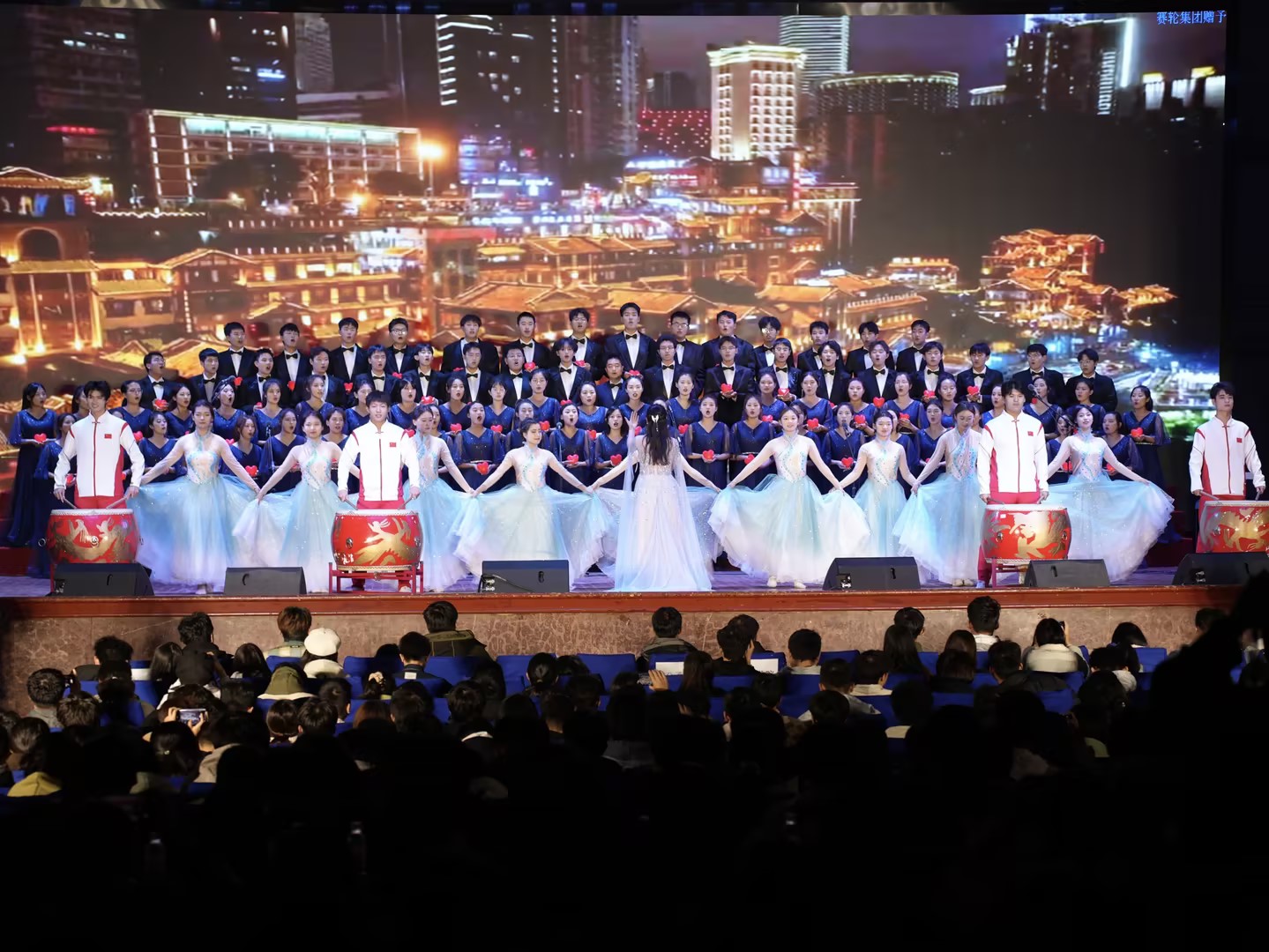 根据校团委相关要求,公司团委精心部署、快速落实,于11月初组建合唱团,备赛时长33天,累计排练次数23次,共计80多个小时。比赛过程中,经管学子以青春朝气演绎出万家灯火、阖家欢乐的美丽中国景象,通过朗诵、舞蹈、鼓点等多种表演形式,向观众展示“青春婀娜”的华夏盛世;通过艺术之美,让青年学子身临其境感受广阔的家国情怀和步入时代新征程的壮志豪情,向广大青年传递“强国有我”的信念担当。