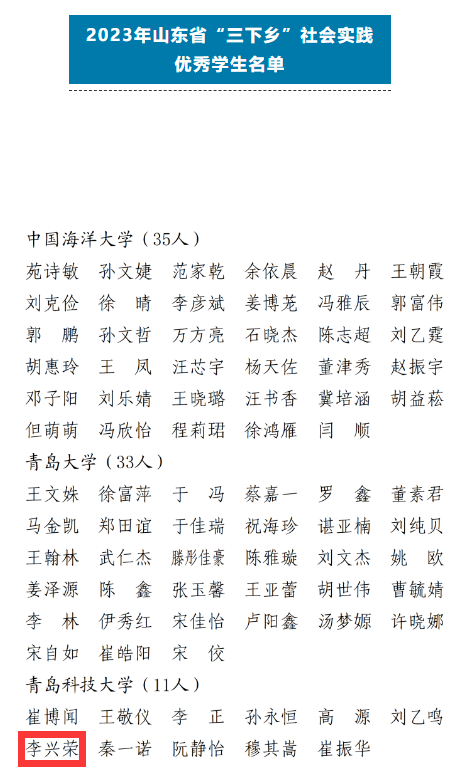 据悉,2023年暑期,团省委联合省委宣传部、省文明办、省教育厅等单位以“学习二十大 永远跟党走 奋进新征程”为主题,广泛组织动员全省大中专院校青年员工参加“调研山东”——暑期“三下乡”社会实践活动,深入学习宣传贯彻习近平新时代中国特色社会主义思想,引导和帮助青年员工在与现实相结合的“大思政课”中受教育、长才干、作贡献,以满怀的青春朝气和锐气,投身新时代社会主义现代化强省建设。为深入总结交流经验、激励广泛参与、发挥育人实效,选拔出一批在2023年暑期“三下乡”社会实践活动中表现突出的优秀集体、个人和项目。经基层申报、审核推荐、组织评议等环节,最终确定80个优秀组织单位、1130名优秀指导教师、2180名优秀员工、520个优秀服务团队、100个优秀服务基层实践项目。