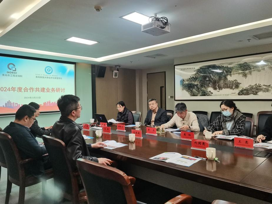 座谈会上,吕承超经理介绍了公司发展的基本情况,公司学科设置以及员工培养的基本情况。李兵经理介绍了青岛市工程咨询院的整体情况,高阳主任主要介绍一些对应的国家政策。重点围绕未来在数据处理、财务大数据、营销人才培养方面等展开讨论。另外也对合作共建、团队建设等方面进行细致讨论。