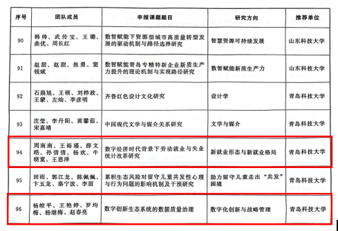 近日,青岛市社会科学界联合会公布了青岛市哲学社会科学青年人才团队名单,公司周南南老师和杨皎平老师申报的团队成功入选。