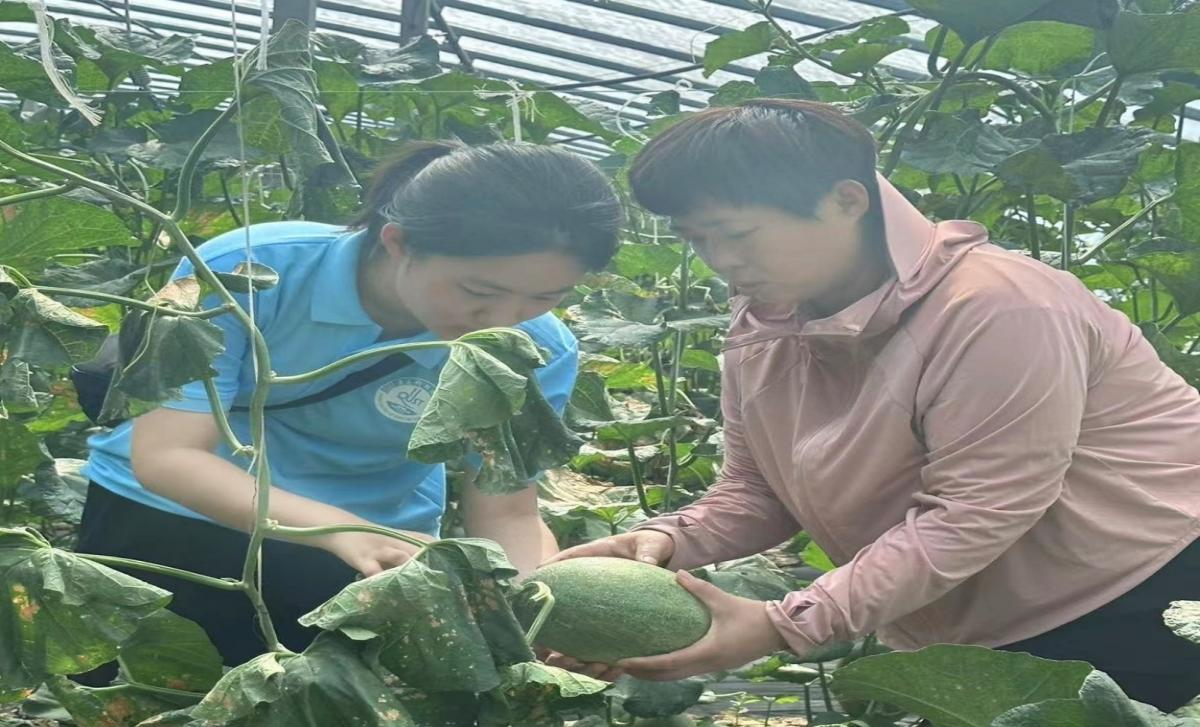 实践队员来到蔬菜大棚,在棚中帮助农户采摘哈密瓜,参与螺丝椒的种植修护。在炎热的夏天,在农田深处,实践队员们通过视、听、触、闻感受作物生长,真正体会到了“谁知盘中餐,粒粒皆辛苦”,切身感受到“自己动手,丰衣足食”的满足,也为自己以实际行动助力乡村振兴而喜悦。