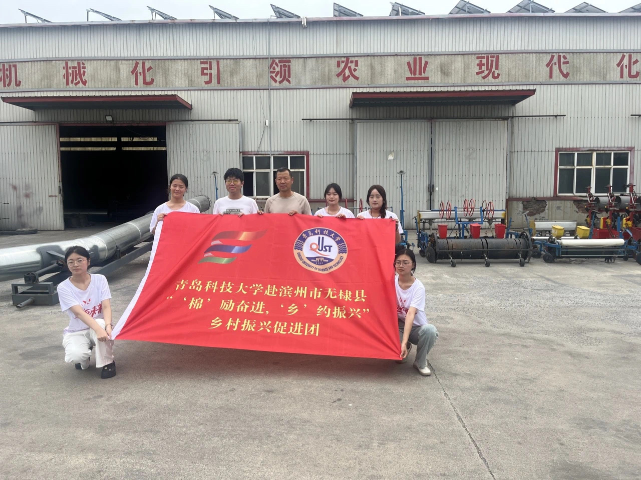志愿服务队到西小王镇景国农机服务专业合作社参观调研,合作社负责人陈景国讲解棉花相关机械发展和全程机械化种植有关情况,队员们纷纷表示对现代农业的智能化、精准化特点有了更直观地认识。