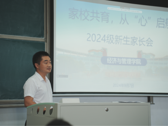 家校共育“心”课堂按时召开,公司党委副书记牛宝卫出席会议,276 名新生家长线上线下参会,会议由辅导员代表王嵩主持。