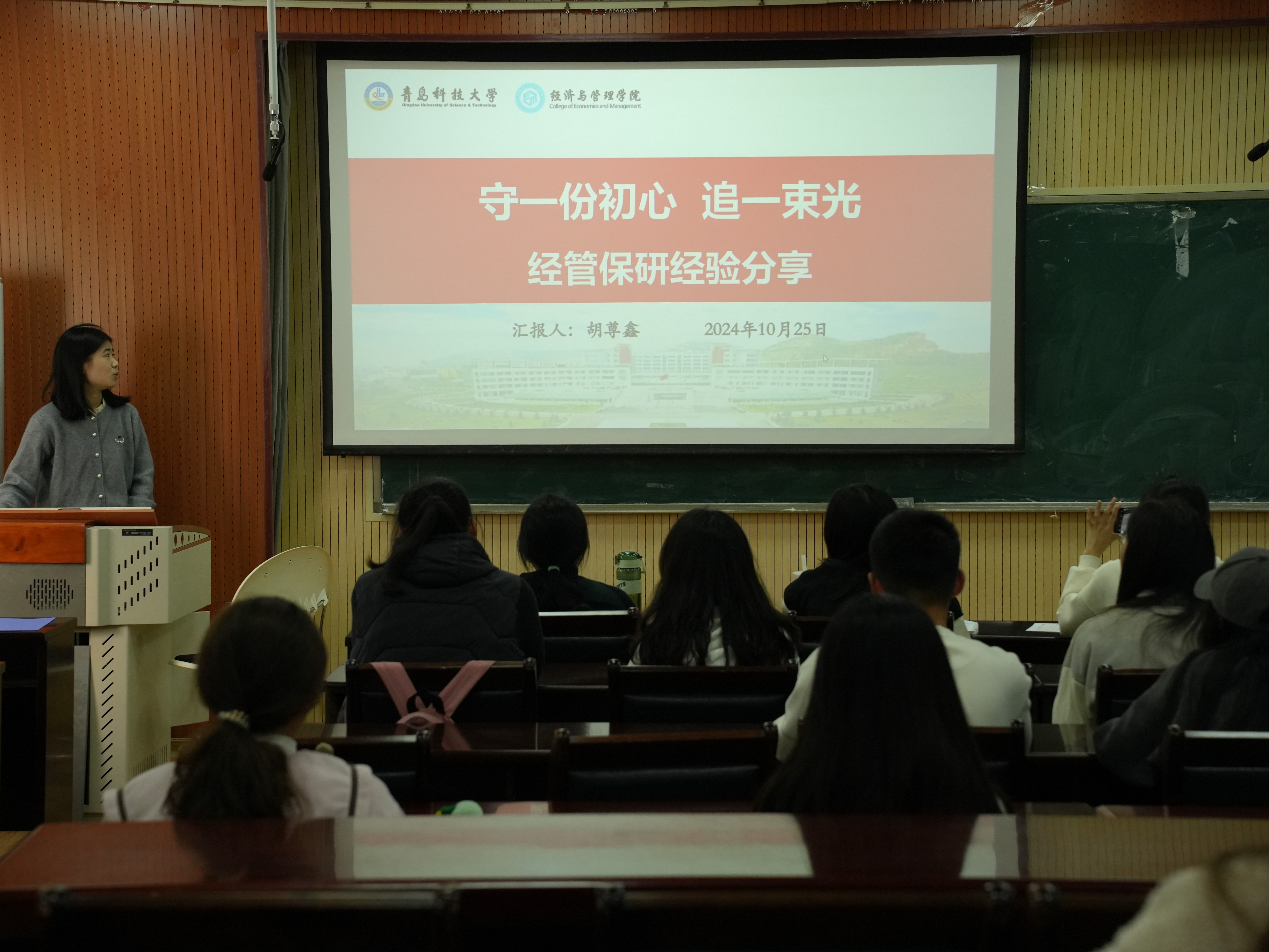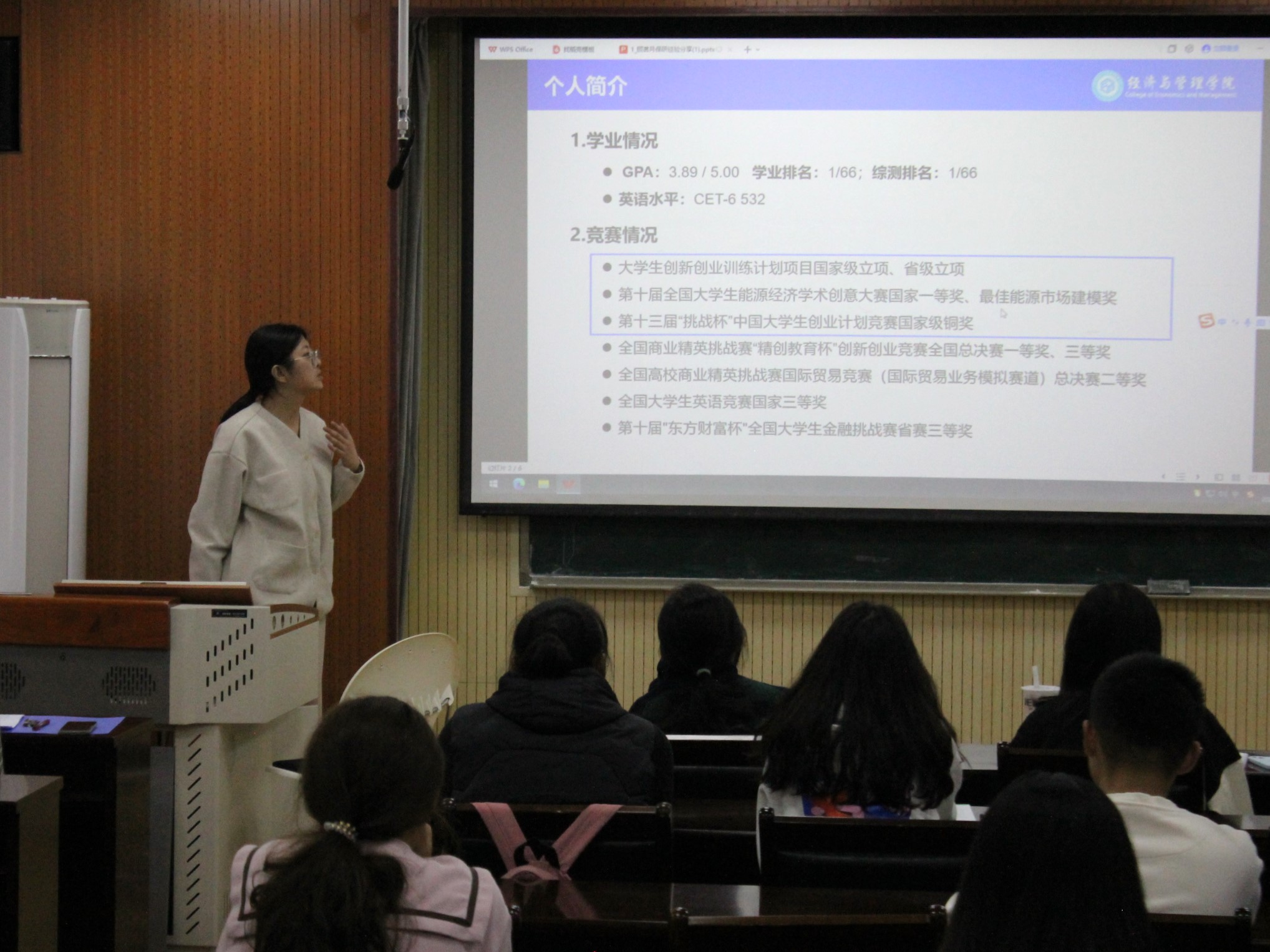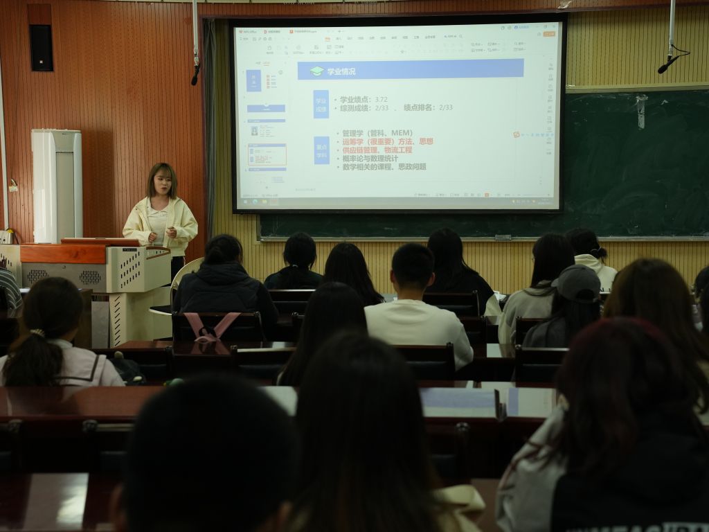 工业专业的李子超以自己对工业工程的深刻理解,为同学们打开了专业知识的新视野,强调特别是要提前了解保研政策、明确保研目标院校及专业、制定科学合理的复习计划,鼓励同学们勇敢追梦。物流专业的于婉婷详细地为同学们解读了本专业的发展方向,解答了对于有目标保研的同学需要做的准备工作。国贸专业的顾茗月分享了保研前期规划、预推免面试心得以及竞赛宝贵经验,为同学们说明了申请的注意事项,讲明夏令营和预推免的区别,解决了员工们的相关困惑。