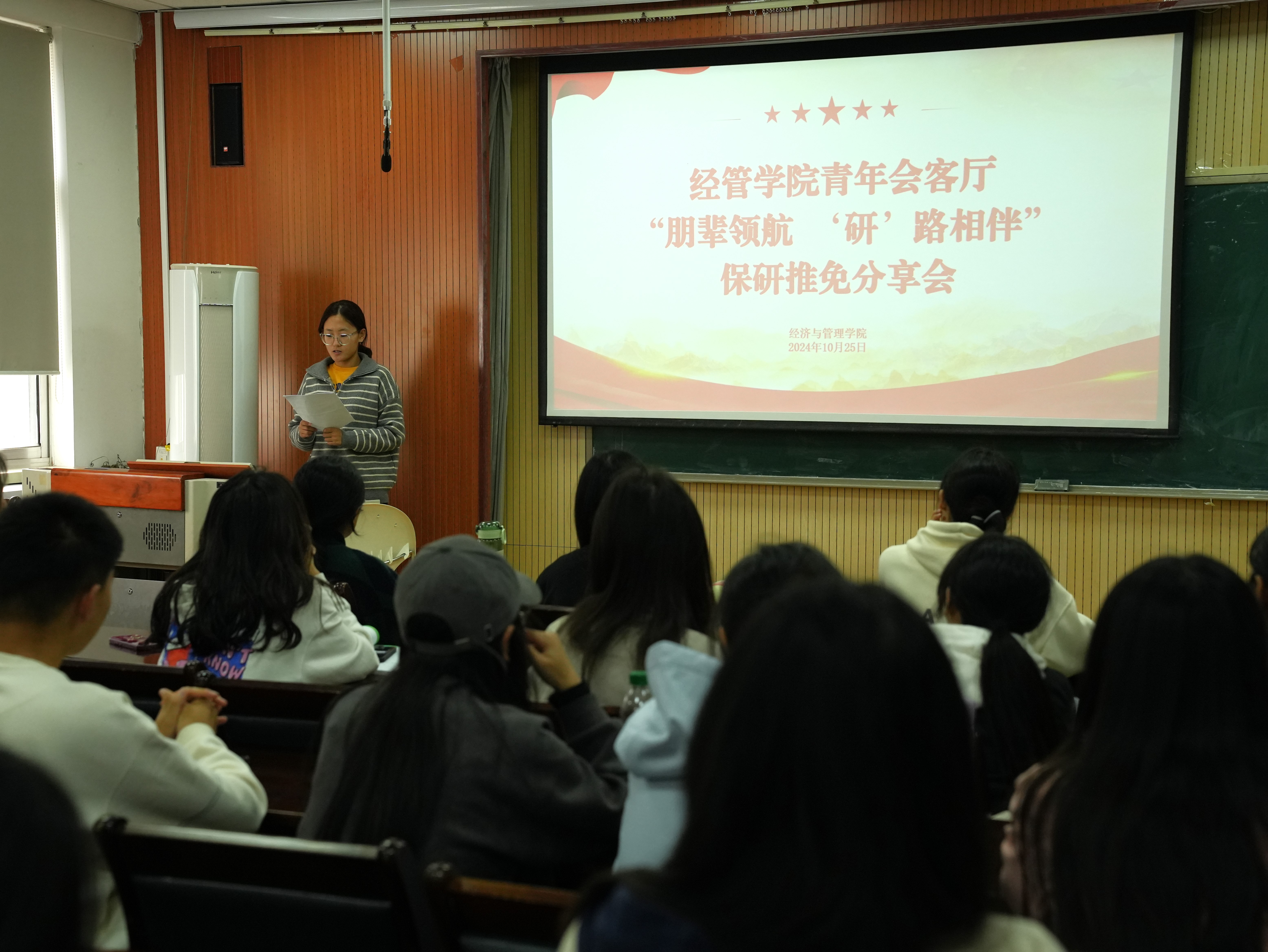为进一步发挥青年会客厅在思想引领方面的榜样带动作用,把“发挥朋辈力量”和“青年引领青年”落实落细,熊猫体育团委积极响应校团委号召,从员工实际需求出发,于10月25日下午在经管楼419开展第八期青年会客厅——“朋辈领航,‘研’路相伴”保研推免分享会,帮助员工更好地了解保研政策和流程,提高员工的竞争力和综合素质。本次分享会邀请了2021级的优秀学子进行经验分享,熊猫体育2022-2024级本科生参加。