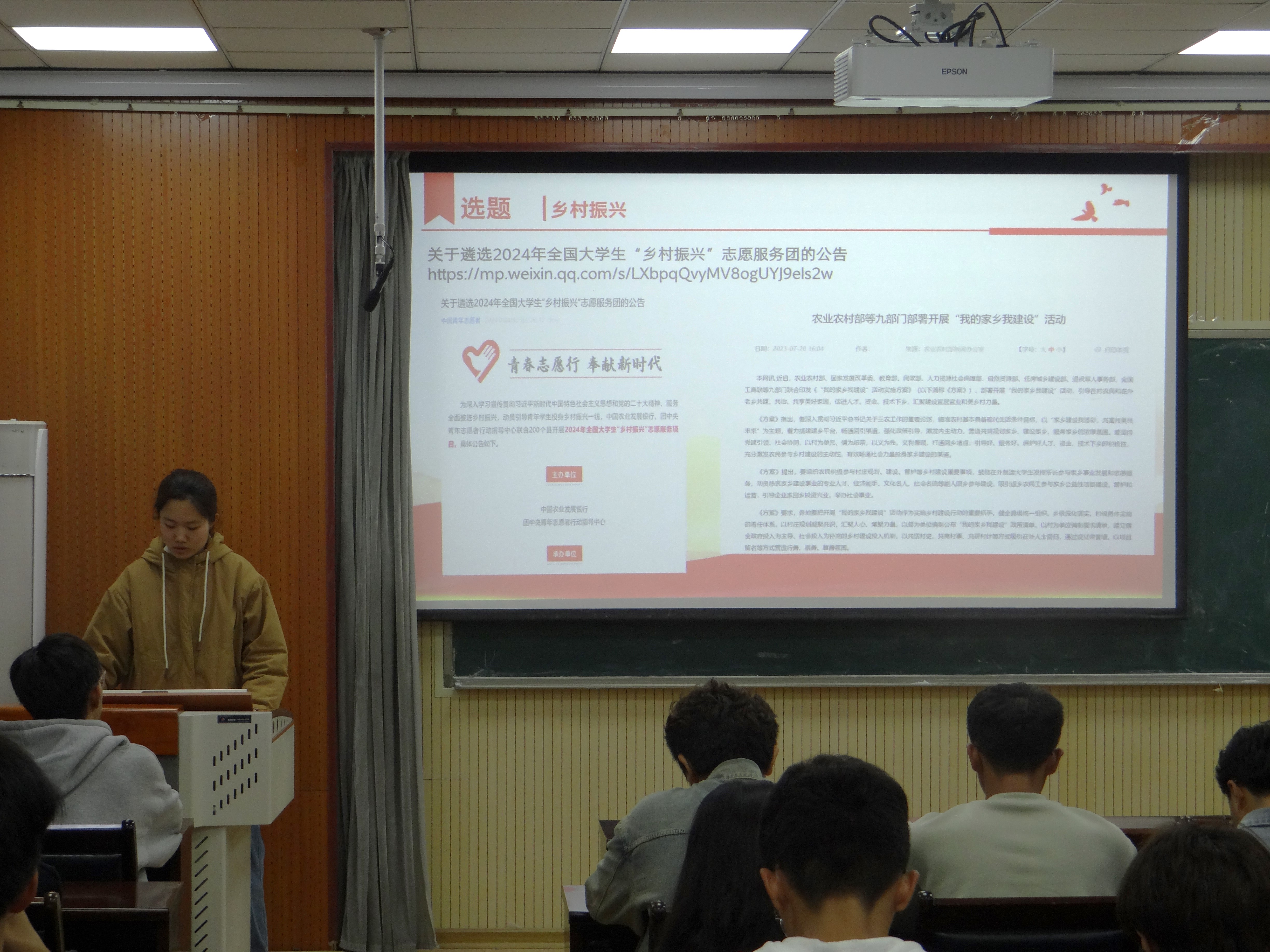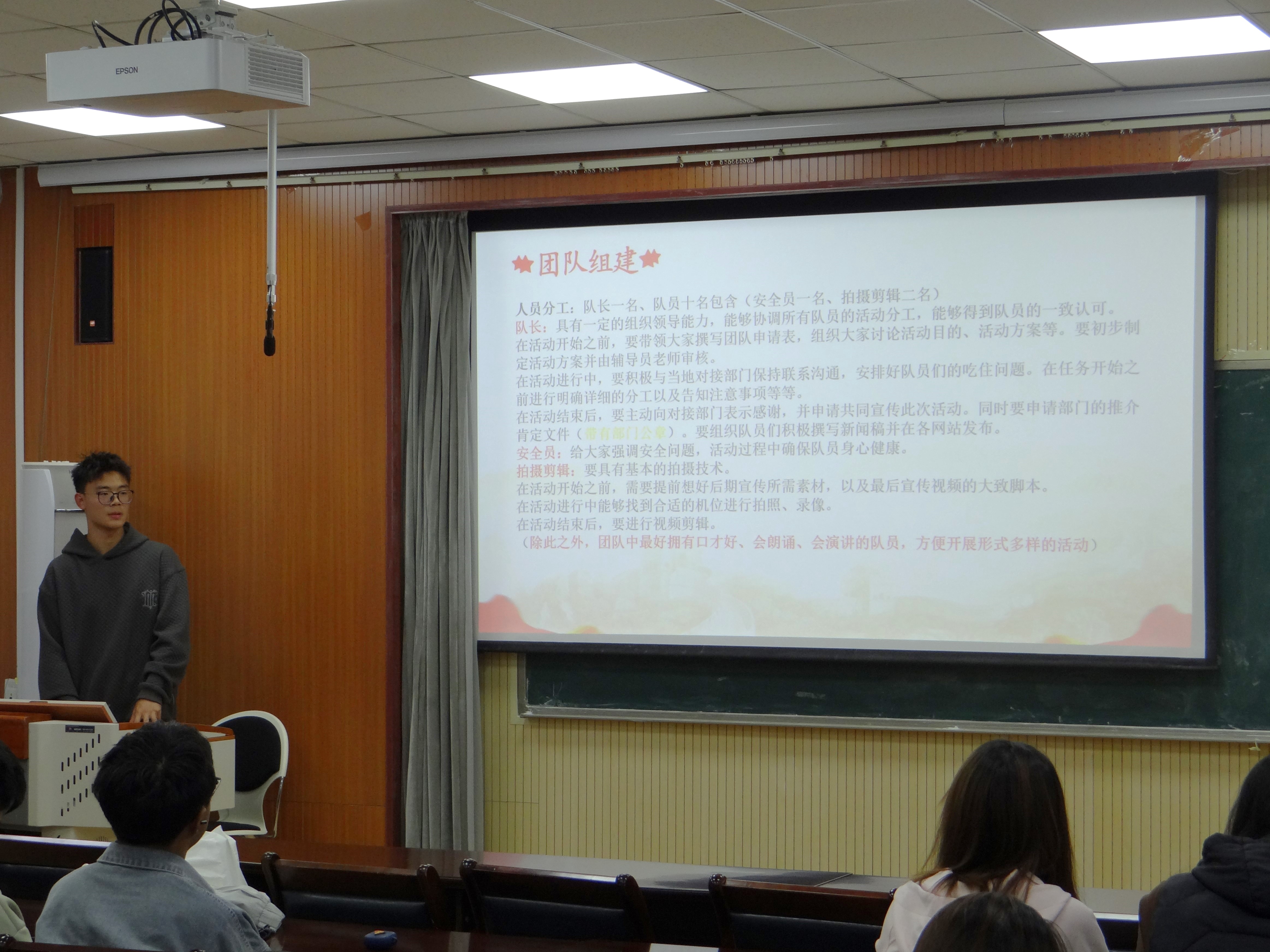 国贸专业的闫广振从三个方面分享了实践活动的获取渠道、流程以及方式方法等,鼓励员工多方面去参与实践活动,提升自我实践能力,肩负起为中国式现代化挺膺担当的青春责任。国贸专业的孙雨辰结合自身经验,从团中央专项活动的申报到如何开展进行详细的解答,她就申报时间、前期准备、申请技巧等进行了详细梳理,为同学们后续实践活动的开展描绘一幅清晰的蓝图。物流专业的牛志强就活动规划、团队分工协作以及后续的成果推广进行深入的讲解和剖析。基于自己对实践活动的深刻理解和切实的实践经验积累,做出极具针对性与专业性的指导,为同学们对实践活动的深度理解打开新视野。