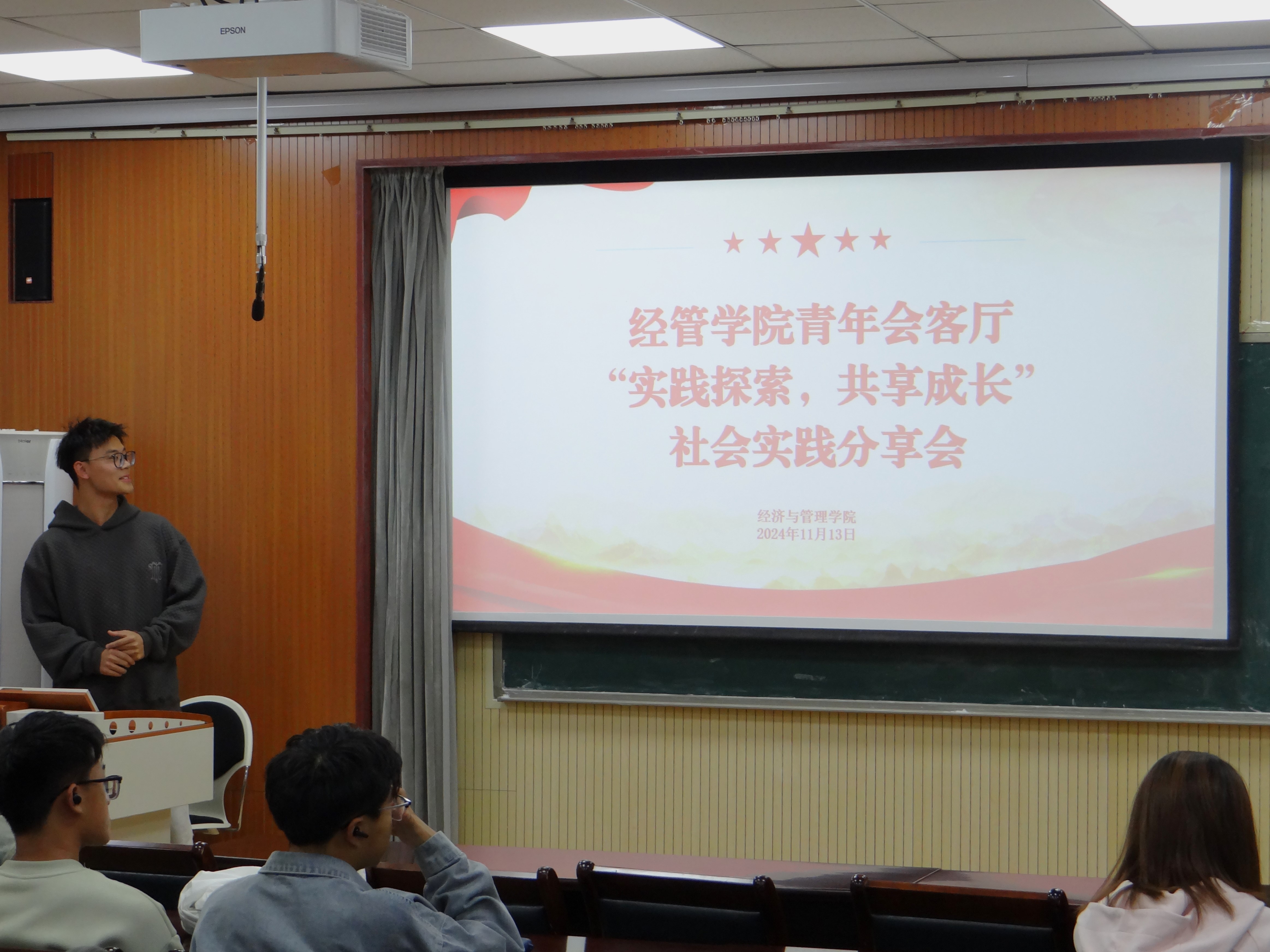 为进一步发挥青年会客厅的引领带动作用,汇聚全过程民主的重要活力,熊猫体育团委紧扣服务青年的工作生命线,于11月12日晚在经管公司415会议室开展了青年会客厅系列活动之“实践探索,共享成长”社会实践分享会,本次分享会邀请了2021级的优秀学子进行经验分享,熊猫体育2022-2024级本科生参加。