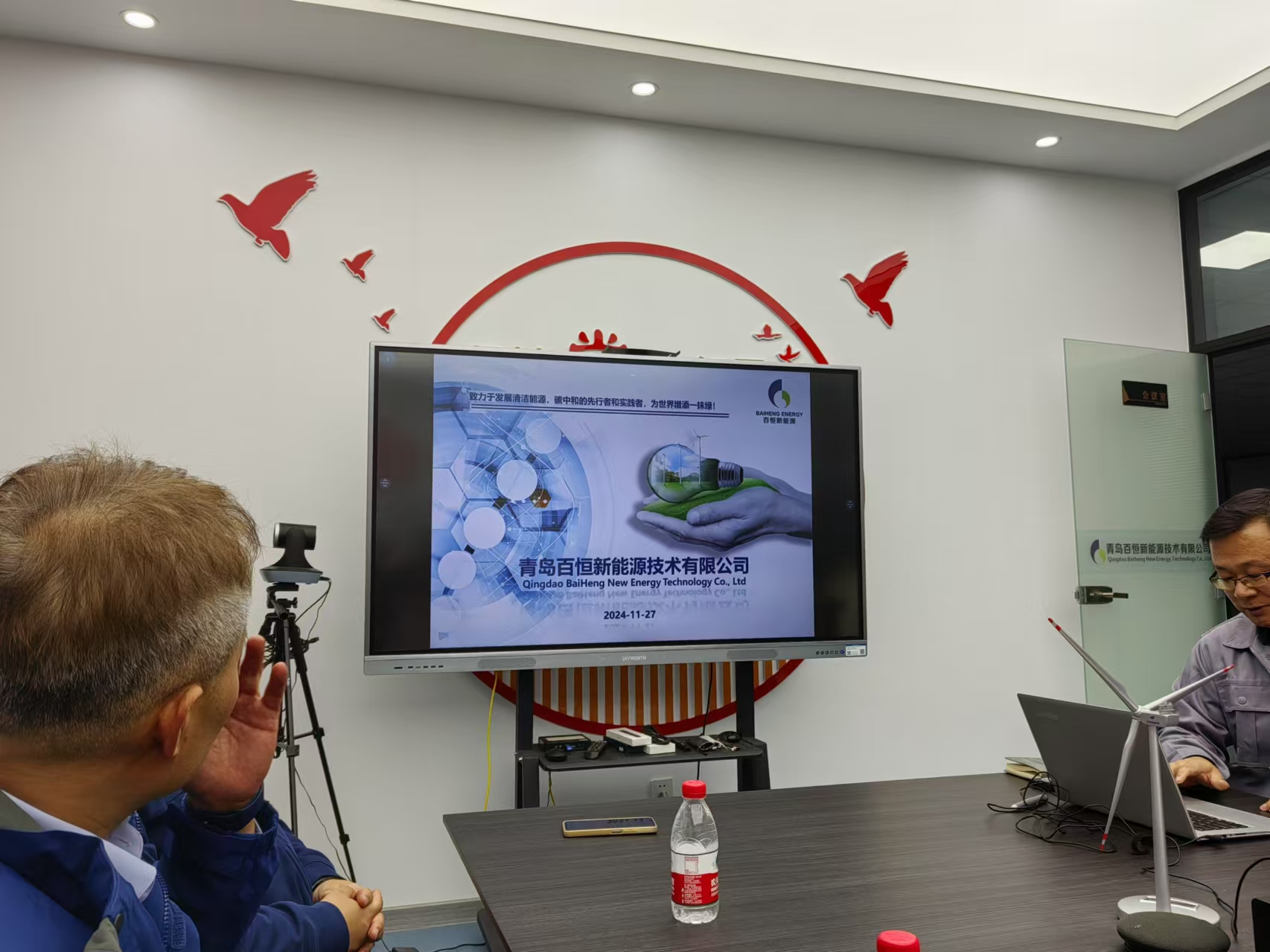 随后,李勋来一行参观了青岛百恒新能源技术有限公司。在企业负责人的陪同下,师生们详细了解了企业的工作环境和文化氛围。企业方详细介绍了公司的发展历程、业务范围以及未来规划,特别是对新能源领域的深入研究和市场前景。公司师生对企业的创新精神和发展潜力给予了高度评价。