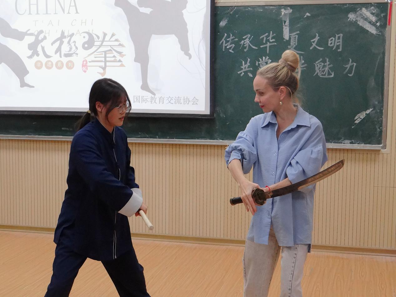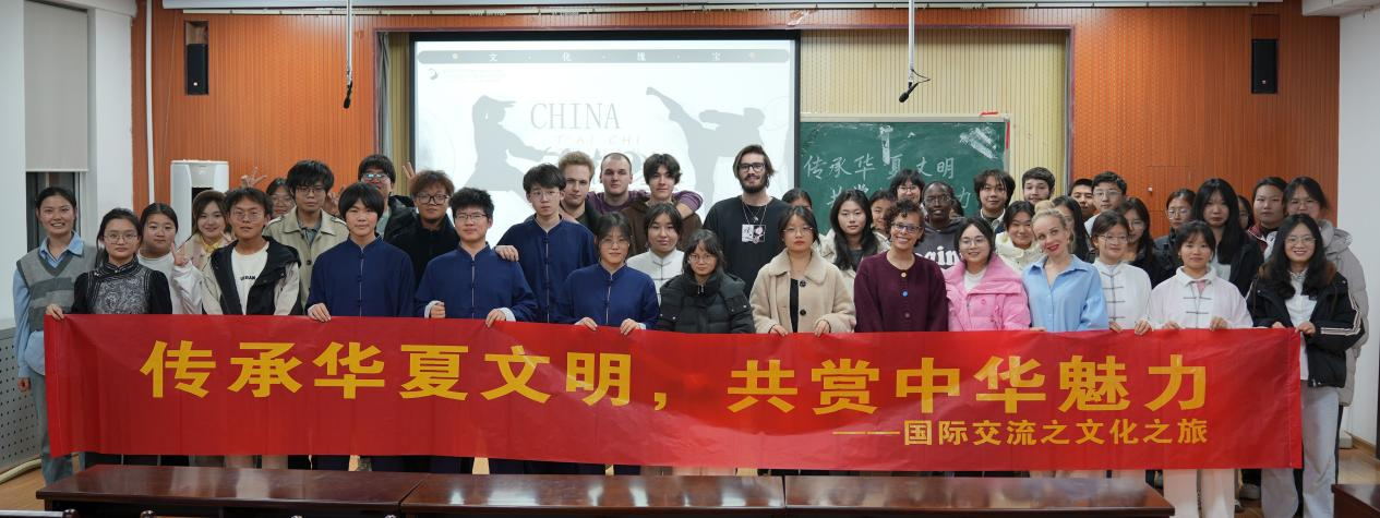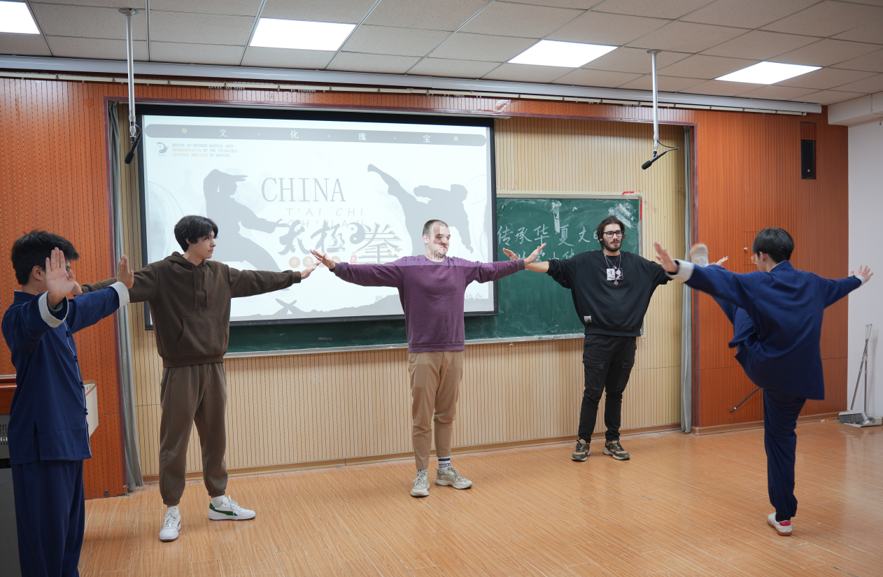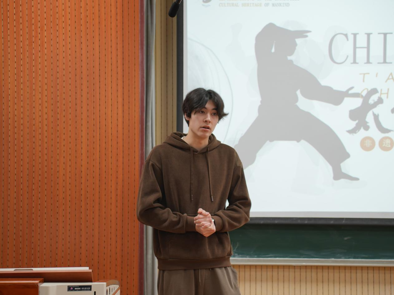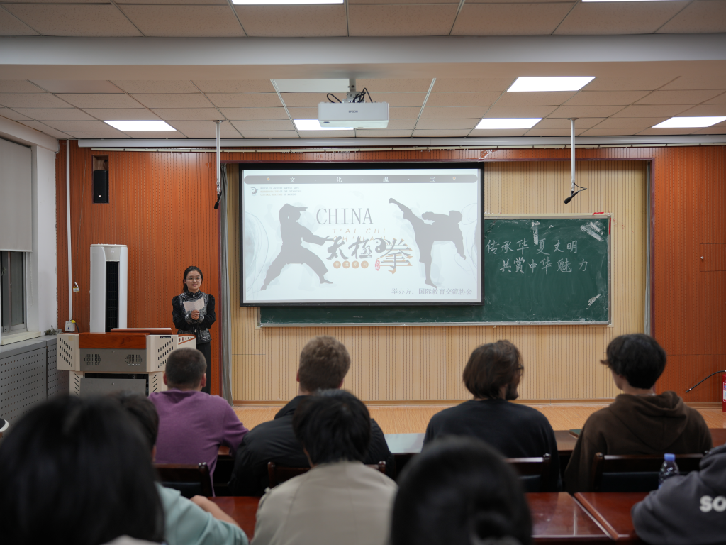 首先,罗雁月同学向外国职工们介绍太极拳的历史渊源和文化内涵。接着,弈剑阁成员示范太极拳的基本动作,现场教学太极动作。成员们把太极拳刚柔并济的特点展现得淋漓尽致,为外国职工们呈现一场蕴含深厚中国文化底蕴的视觉盛宴,赢得热烈掌声。