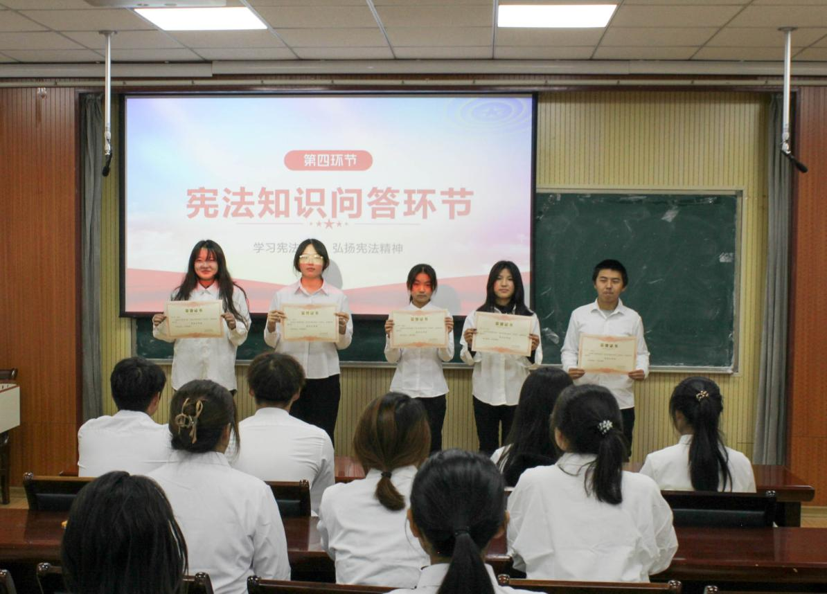 宪法知识竞答比赛。公司以各班级为单位,组织开展“宪法知识竞答”比赛,以赛领学,以赛促学,通过激烈的比赛氛围,加深员工对习近平法治思想、宪法精神的理解和记忆,推动宪法知识入脑入心。同时,通过比赛选拔出优秀选手,树立榜样,带动全院员工学习宪法的积极性。