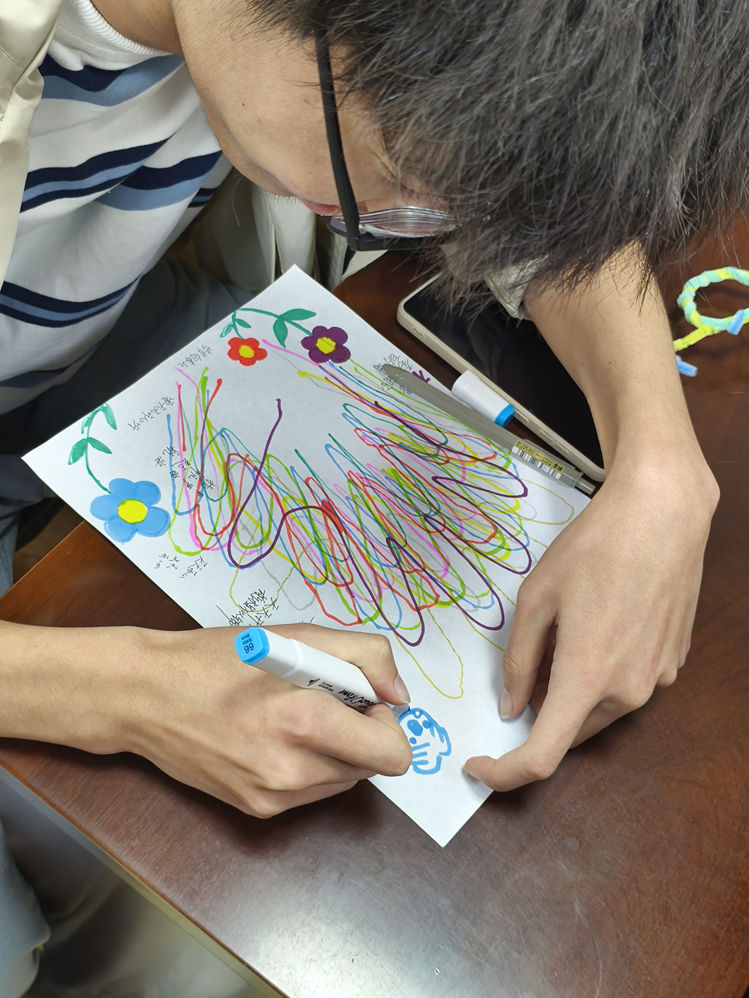 以开展“‘击’扬青春,别具‘绘’眼击掌绘画活动”为契机,将育心育德融入其中,搭建交流平台。活动时,同学们轮流在A4纸上画手掌轮廓、写励志话语并传递,过程中大家纷纷展露笑颜。该环节提升员工表达善意能力,并拉近了同学们之间的距离,推动校园友善氛围建设,助力将对生命的关爱与尊重化为日常的实际行动。