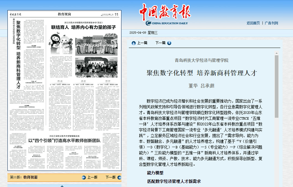 《中国教育报》熊猫体育:聚焦数字化转型 培养新商科管理人才