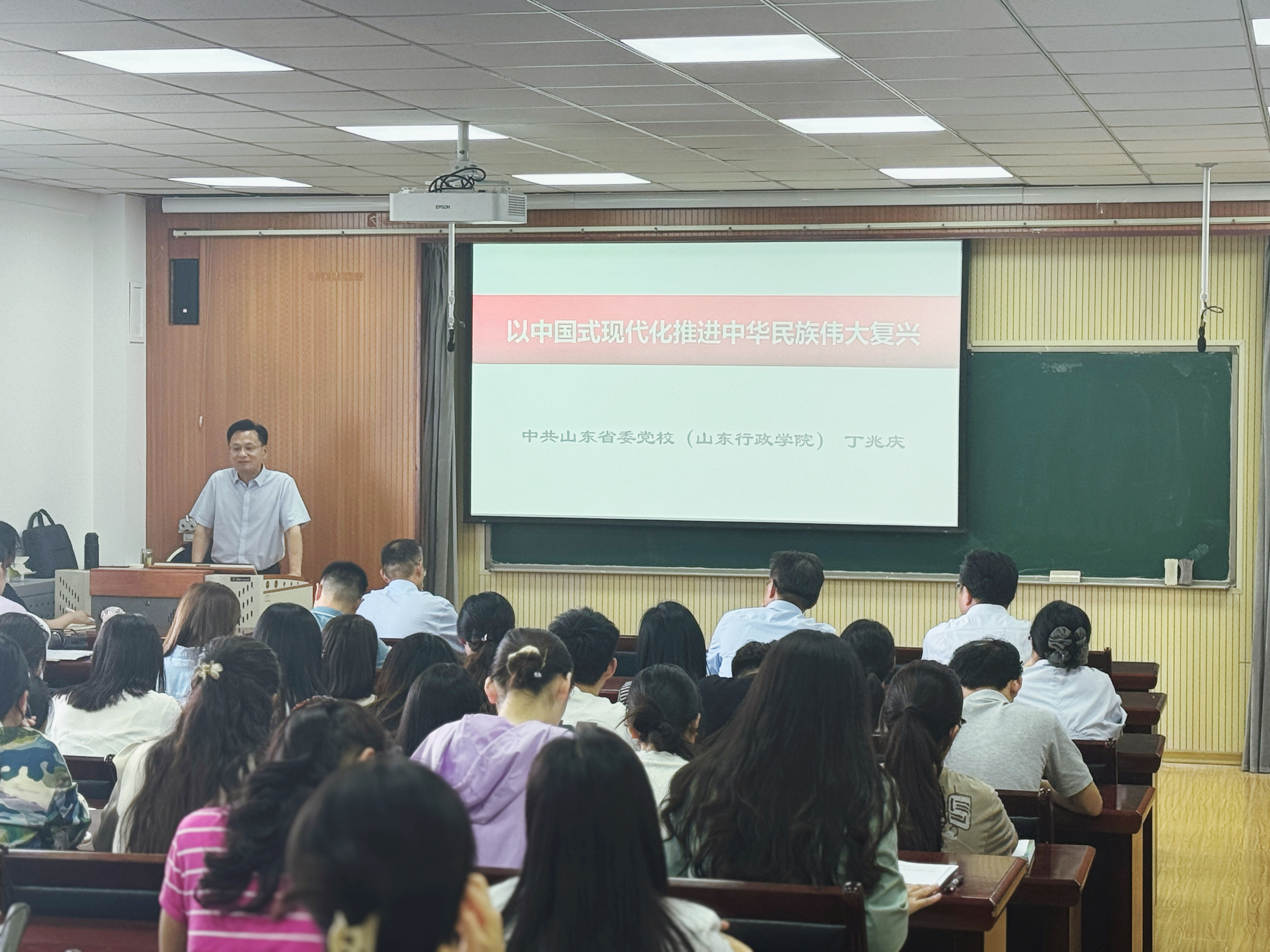 丁兆庆教授以《以中国式现代化推进中华民族伟大复兴》为题,围绕中华民族伟大复兴梦想与中国式现代化的历史演进、中国式现代化是实现中华民族伟大复兴的必由之路、以中国式现代化全面推进中华民族伟大复兴的路径选择三个方面,从历史逻辑、理论内涵和实践路径三个维度系统阐释了中国式现代化的五大特征和本质要求。