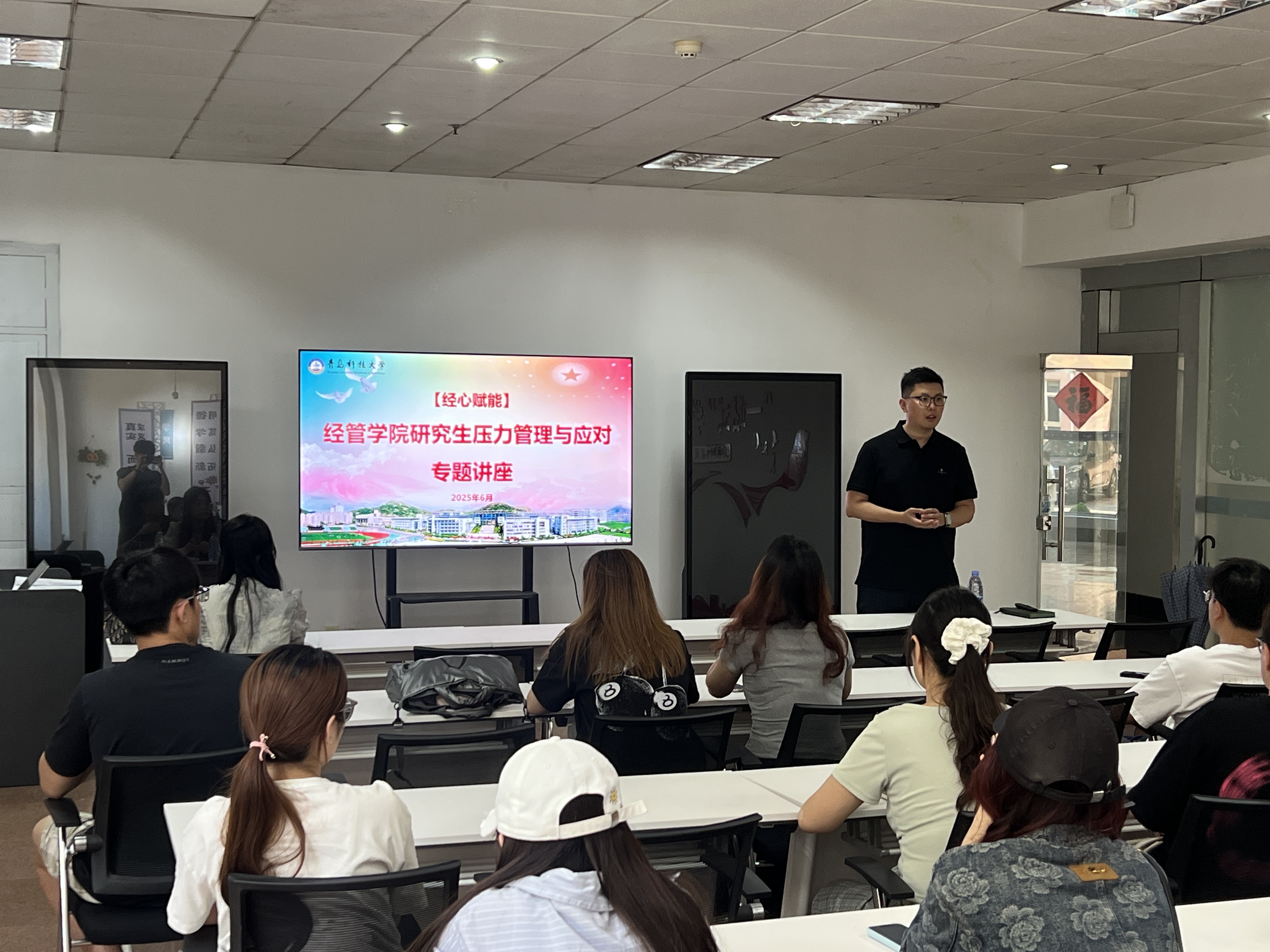 为缓解研究生在学术科研、宿舍关系、师生沟通及求职就业等方面的压力,经过前期充分的问卷调研和数据统计,公司于6月10号下午在一站式社区开展了经心赋能——研究生压力管理与应对专题辅导。公司团委书记兼学工办主任付继航主持,特邀校心理咨询中心专职教师张岍担任主讲嘉宾,以创新的互动形式和巧妙的讲授技巧,为公司研究生送上了一场缓解心灵压力的“甘霖”。