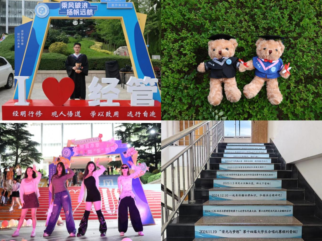 公司以美育浸润心灵,为毕业季注入温暖底色。“仲夏如歌 青春启航”音乐嘉年华中,毕业生用艺术语言诉说校园记忆与未来期许;公司精心设计的毕业纪念小熊,身着专属学士服,成为承载青春记忆的独特信物,为毕业生定格难忘瞬间;“青春印记”纪念楼梯贴以校园点滴与毕业寄语,在台阶间铺展代际相连的情感长廊。这些浸润着美育温度的创意表达与暖心设计,将青春故事凝刻成永不褪色的纪念。