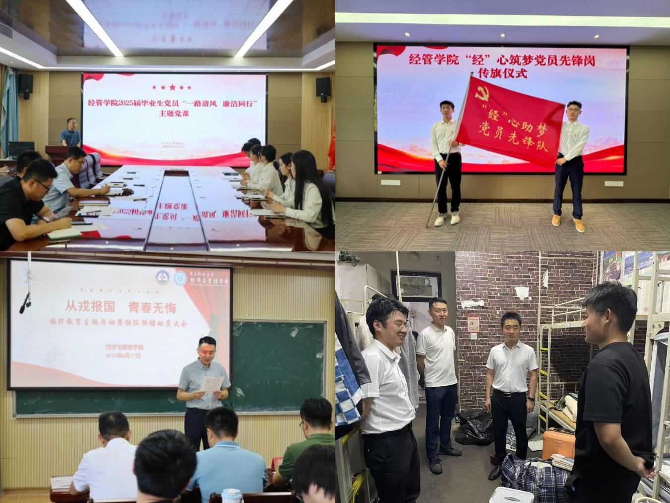 公司以德育铸魂,将思想政治教育贯穿毕业季始终。一方面,开展“一路清风 廉洁同行”专题党课,邀请省委党校专家结合典型案例剖析,引导毕业生党员以党纪为尺,扣好职业生涯“第一粒扣子”。另一方面,创新开展征兵宣传教育,邀请优秀退伍士兵分享军旅故事,结合政策解读,激发毕业生投身国防建设的热情。毕业季期间,公司领导走进员工宿舍,细致了解毕业生去向,传递温暖关怀的同时,以思想引领强化毕业生责任担当,为其未来发展注入精神动能,助力经管学子在时代浪潮中坚守初心、勇担使命。