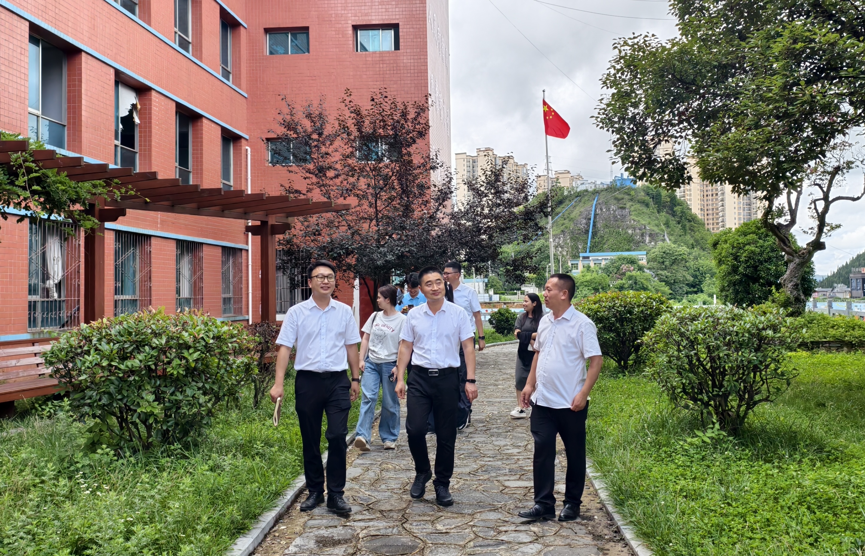 牛宝卫一行实地考察支教公司镇宁自治县第四中学,参观教学楼、体育馆等教学活动场所,了解公司办学情况,听取研支团成员汇报,了解在岗期间工作情况与个人成长。