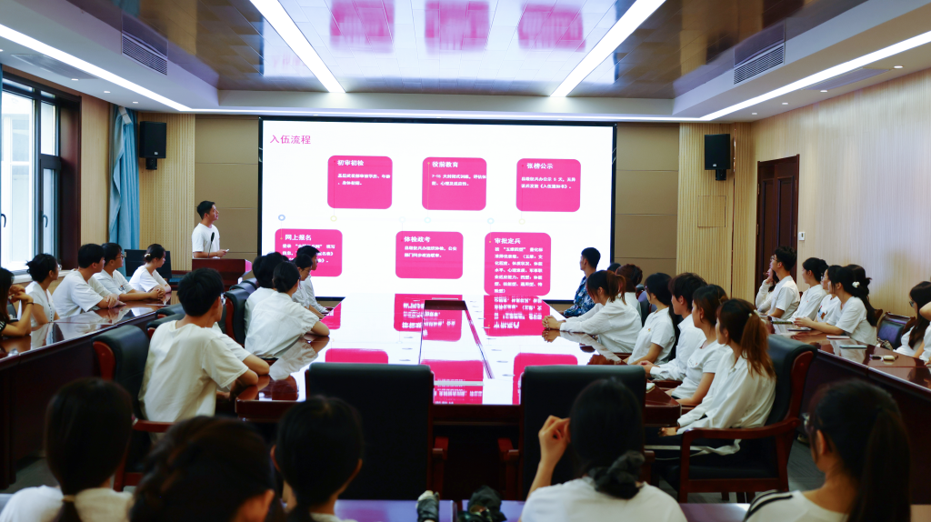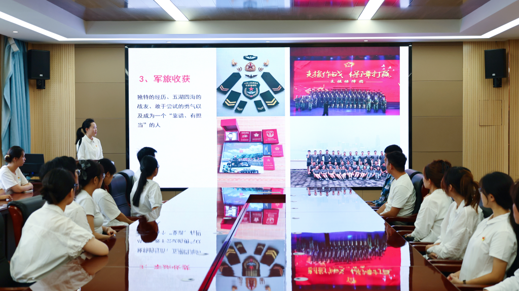 为进一步激发青年学子投身国防事业的热情,公司党委特别邀请退役士兵党员代表开展“戎光淬志,青春报国”主题分享会。曾服役于中国人民解放军驻香港部队的2024级硕士研究生潘思梦,以“从校园到香江,从迷彩到青春”为题,结合自身经历讲述了军营中淬炼意志、磨砺品格的故事。她提到:“当国歌在维多利亚港湾响起,当五星红旗与紫荆花旗一同升起,那一刻的自豪感让我深刻体会到保家卫国的千钧重担。”本科生2023级退役士兵艾克拜尔·艾海提分享了自己戍守边疆的故事,“守护界碑宣示主权,是军人的使命和荣光!”退伍返校,他将军人的自律、坚韧带进校园,继续保持着军人的优良作风,续写军人荣光。