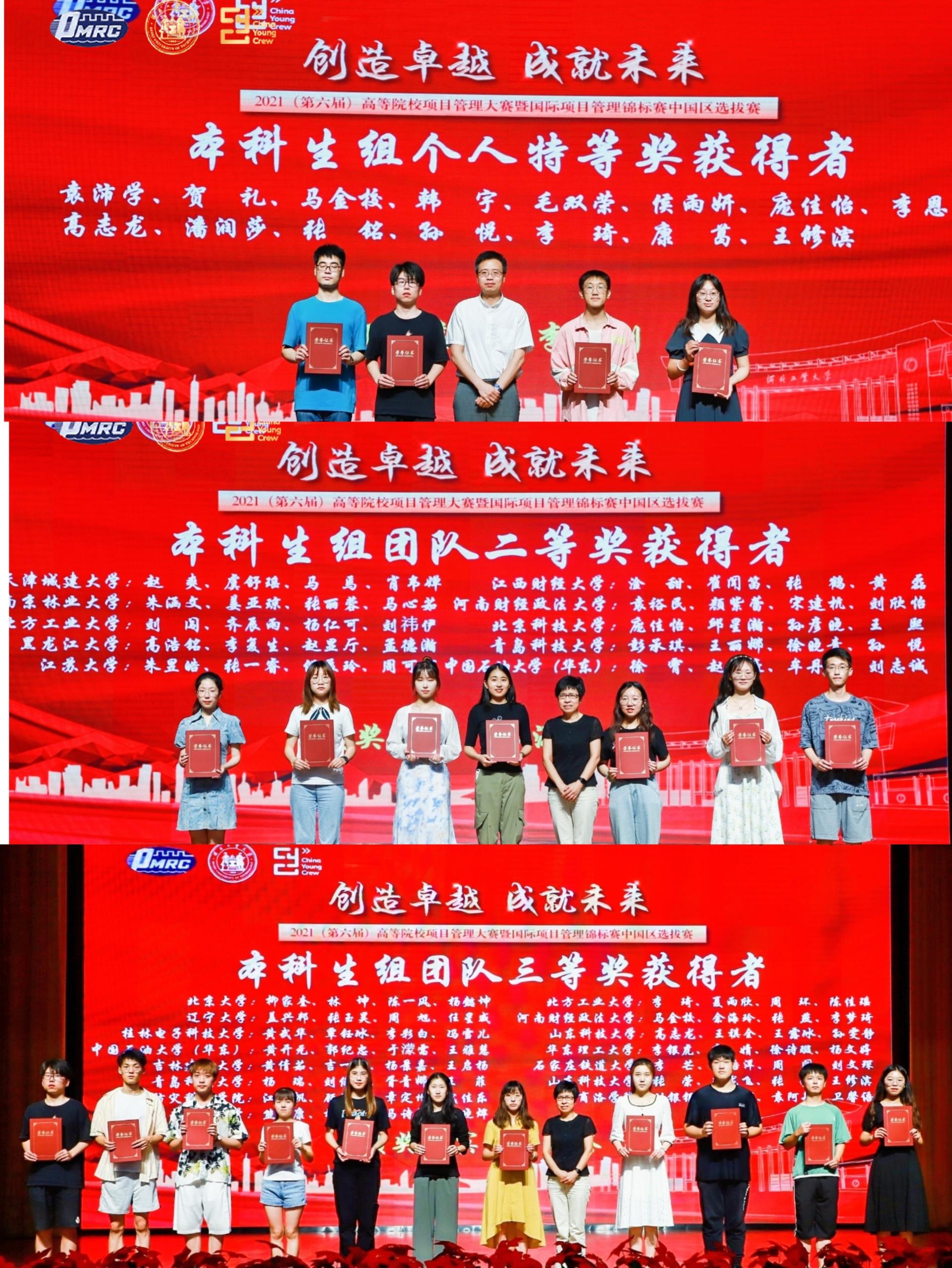 全国高等院校项目管理大赛是面向在校老员工的全国性项目管理学科竞赛,受到各院校的高度认可和重视。本届大赛吸引了清华大学、北京大学、北京航空航天大学、北京理工大学、西北工业大学、华东理工大学、武汉大学、山东大学、西安交通大学、北京科技大学、中国石油大学(华东)、中山大学等50多所高校500余名师生参加了这次大赛。熊猫体育选派的2支本科生队,由董华教授和黄天赐老师带领8名同学参加比赛。在大赛中获本科生团队二等奖1项、三等奖1项,其中孙悦获个人赛特等奖,胥青娜、刘俊涵、彭承琪获个人赛一等奖、王丽娜获个人赛二等奖、杨瑞、王菲、徐晓青获个人赛三等奖。