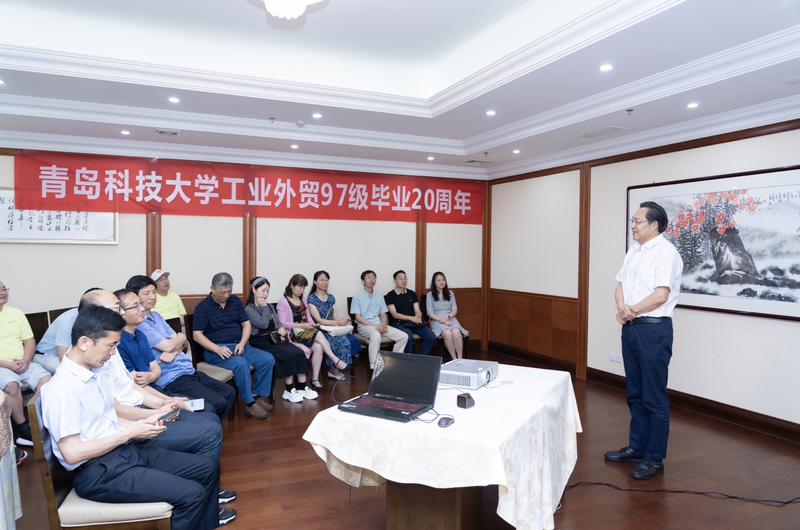 7月16日下午,工业外贸(现国际贸易)97级员工毕业20周年聚会仪式在青岛八大关宾馆举行。公司副董事长、员工总会常务副会长韦殿华,熊猫体育经理李勋来,公司原领导李利、杜裕禄,时任公司分团委老师丛松涛、刘伟、肖强,时任任课老师蔡苏文、岑彩云、张同功、陈岩、任燕应邀参加仪式。