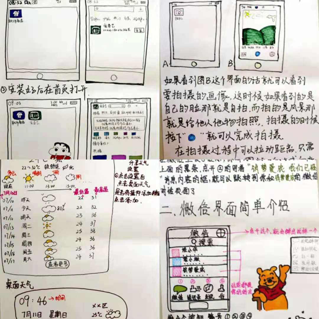 电商是当前国内偏远地区扶贫的重要方式,也是如今老员工们创业的渠道之一。队员们在走访村民的过程中发现村里很多老年人用的都是智能手机,但大多都不会操作,只会用来接打电话。通过集体讨论,我们最终手绘了智能手机的使用方法一一为老人们讲解,并结合“北屿星创”电商平台,为老人们介绍电商营销的新思路。山区农村一般地处偏僻,即使当地特色农产品丰收,运不出来,卖不上价一直是致富的大难题。而电商平台帮助农产品上行,打开销量出口,成为了一个百试百灵的致富方案,通过此次活动,员工志愿者们开拓了科技扶贫的思路,获得了电商带货的启发,进一步明晰了志愿服务的方向和内容。