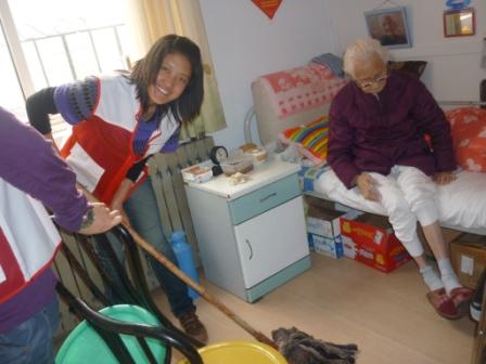 志愿者们分成若干小组,陪伴老人们渡过了愉快的一天。有的同学为老人端送洗脚水,有的同学为老人唱歌跳舞;老人们则兴致勃勃的同大家聊天,游戏,还有的老人还和同学们一起唱起了老红歌,88岁的“明星奶奶”甚至说起了英语,气氛十分温馨融洽。在和志愿者们的交流中,他们分享了自己的人生经验,并勉励大家好好学习。