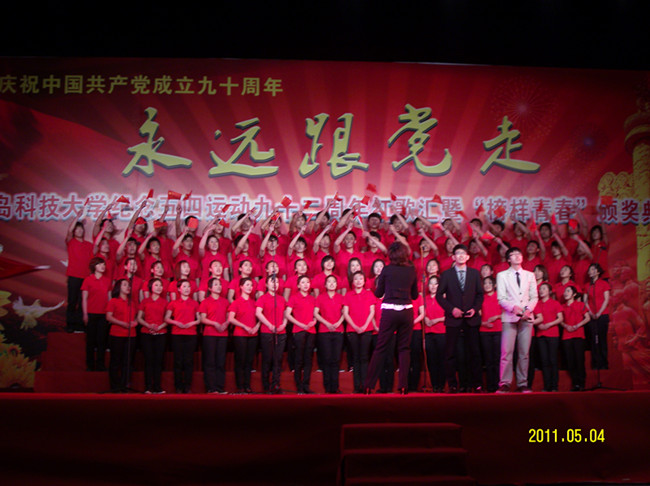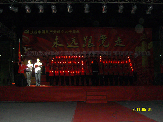 为纪念五四运动92周年以及中国共产党建党90周年,公司于5月4日晚在崂山校区明德广场举办了“永远跟党走”五四红歌汇暨“榜样青春”颁奖典礼。
