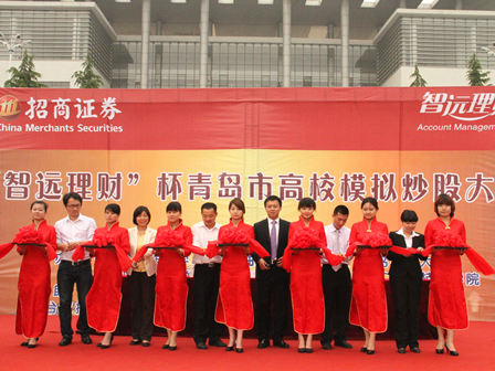 会议开始,公司党总支副书记张同雷发表讲话。张同雷指出,在当今国际经济形势日益复杂的背景下,中国正面临着重要的转型时期,随着我国对于股票认识的飞跃,希望同学们更多地关注股票。随后校团委副书记曲慧敏老师为大家阐述了继智商、情商之后,财商的重要性,同时,众多高校的参与也扩大了本次比赛的影响力。她希望同学们通过本次比赛展示风采、获得友谊并锻炼自己的能力。最后由本次比赛的主办方招商证券青岛分公司代表袁伟彬先生上台发言,他为在场观众阐述了“以卓越的金融服务实现客户价值增长,推动证券行业进步”的公司使命,希望与公司加深合作、共同发展。而剪彩仪式的现场吸引了众多同学,咨询处人头攒动,气氛热烈,表现出了同学们极大的兴趣。