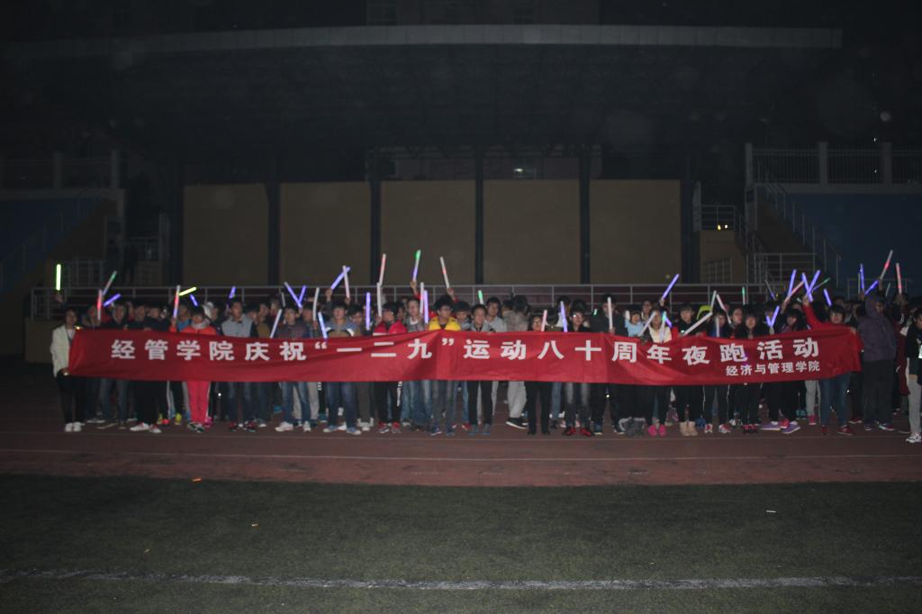 为纪念一二九爱国运动80周年,激发广老员工的爱国热情,同时响应“三走”主题群众性课外体育锻炼活动号召,11月29日晚,熊猫体育于南苑操场组织开展纪念“一二九”运动八十周年夜跑活动,近二百名员工准时到达集合地点,依次领取了荧光棒、指灯等装备共同参与了此次活动。