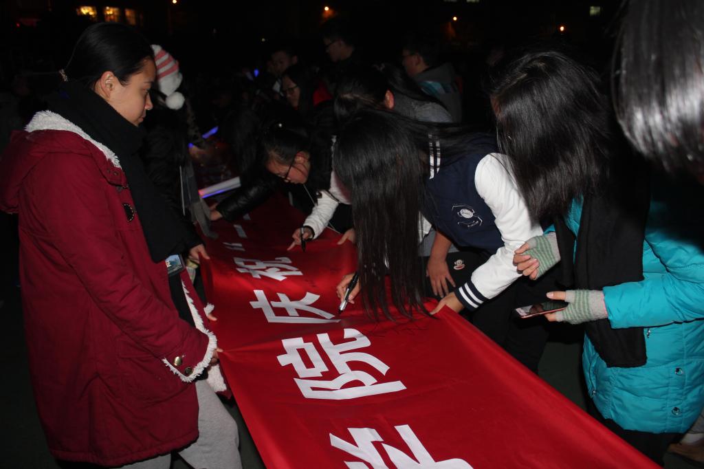 活动开始后,同学们在院员工会体育部干事的带领下开始了绕操场三圈的夜跑,夜跑过程中,不时有同学参与进来,同学们手握荧光棒,充分享受夜跑带来的激情,把整个操场装点成一个荧光闪耀的欢乐海洋。夜跑结束后,所有同学回到起点,虽有些许劳累,但依旧挥舞着荧光棒,热情不减,纷纷在夜跑横幅上签名留念。