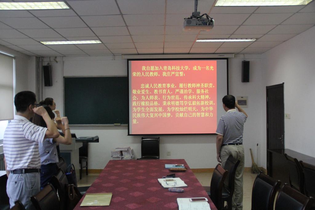 为了加强教师师德建设,切实增强新进教师教书育人、为人师表的责任感、使命感和荣誉感,根据人事处下发的《关于组织开展教师宣誓活动的通知》的部署要求,公司于9月6日下午在经管楼415教室隆重举行了新进教师宣誓仪式。经理王志宪、党总支书记丛海燕和新进的六名教师参加了宣誓仪式。