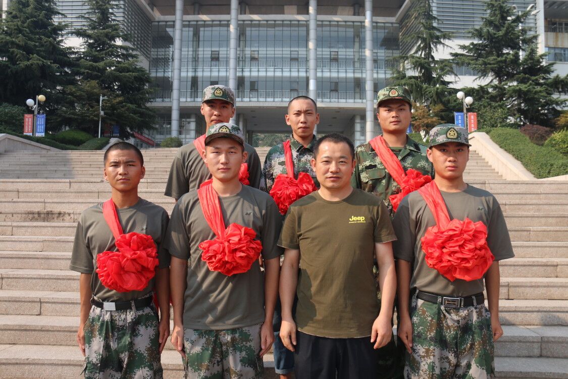 入伍的七名同学分别是市场营销柏延铭,即将去往武警边防新疆阿克苏边防;工业工程杜鹏,即将去往空军西部战区西空乐山基地;工业工程陈超超,即将去往安徽合肥武警消防;工商管理李松,即将去往陆军北部39军190旅;物流管理刘士龙,即将去往军委动员部浙江省军区;市场营销王勇,即将去往陆军西部21军62旅;工商管理苑祥臣,即将去往陆军北部9军190旅。这七名同学都有着向往军营、锻炼自己、报效祖国的决心和信心,即将到军营成为一名光荣的解放军战士,党总支副书记兼副经理张同雷与他们合影留念,希望他们能够艰苦训练、服从组织,肩负起保家卫国的光荣使命。
